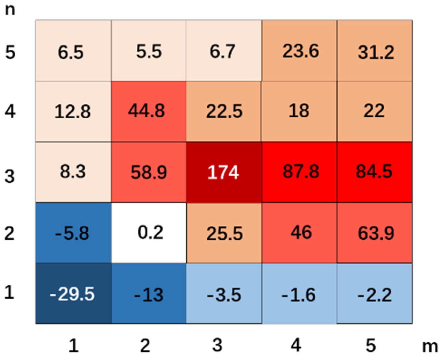 To comprehensively evaluate the inspection performance, one experiment was conducted in which PSE, defined in Equation (26), was utilized to evaluate the proposed framework with different partition parameters. For clear visualization of the comprehensive influences of