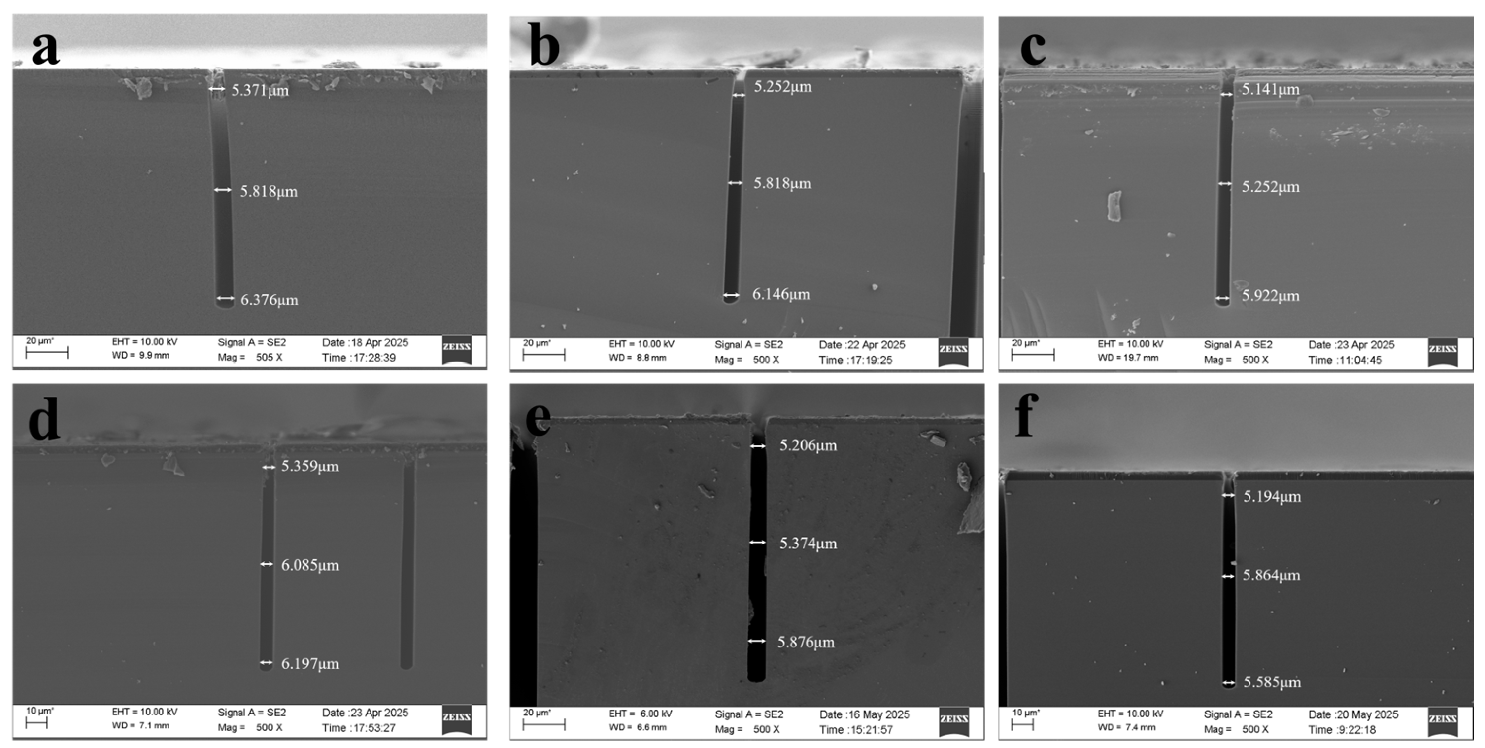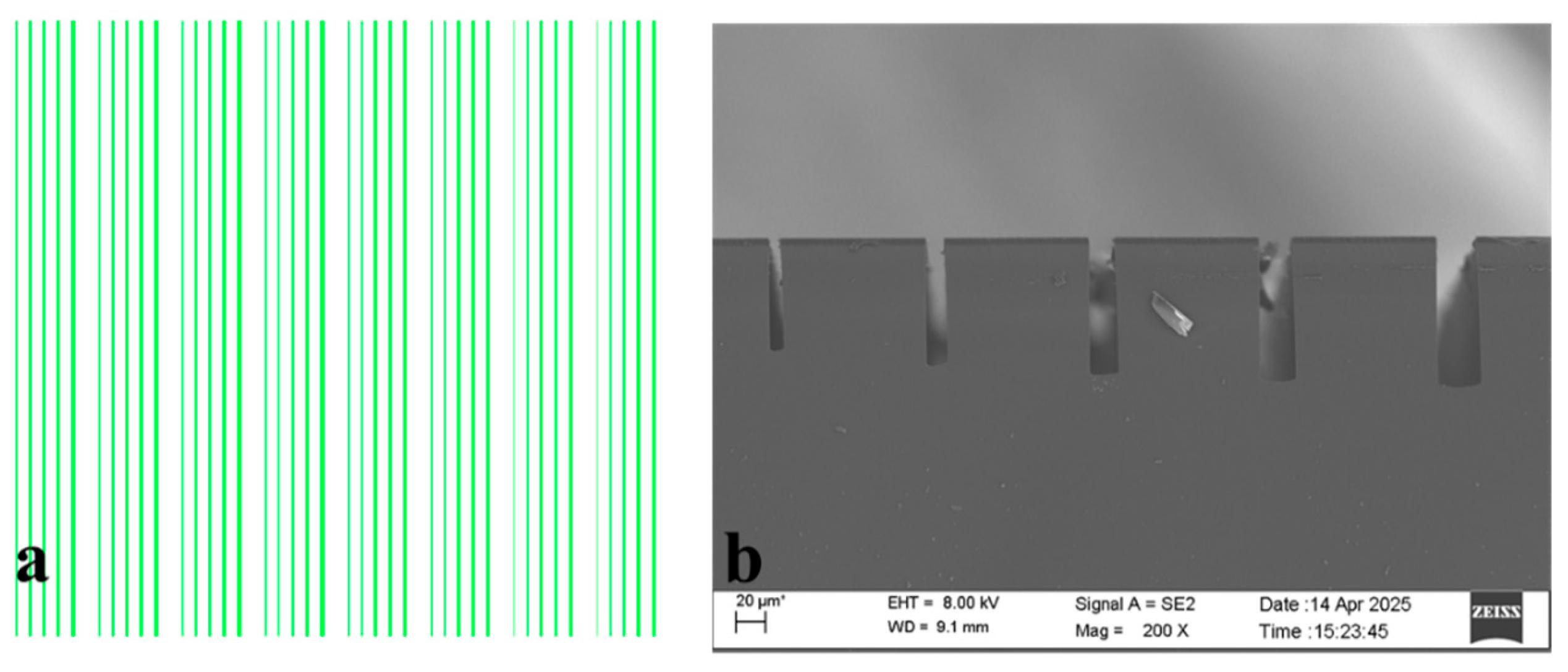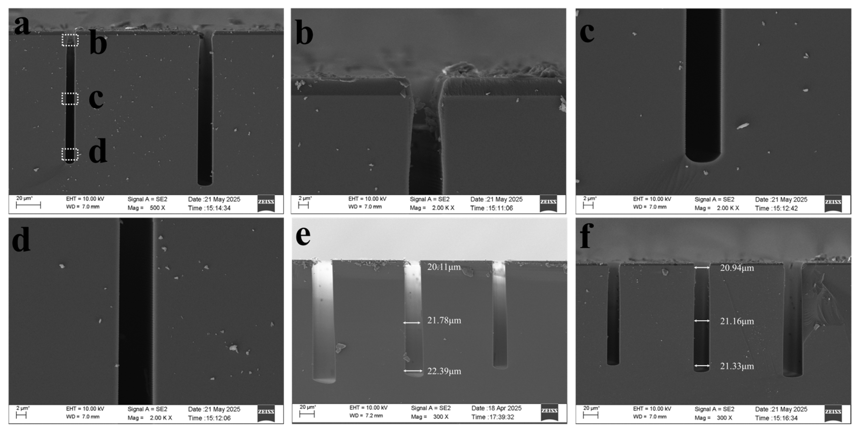 - Chen, H.; Zhu, C.; Lin, G.; Lin, Y. Deep silicon etching technology and applications: A review. J. Micromech. Microeng. 2025, 35, 083001. [Google Scholar] [CrossRef]