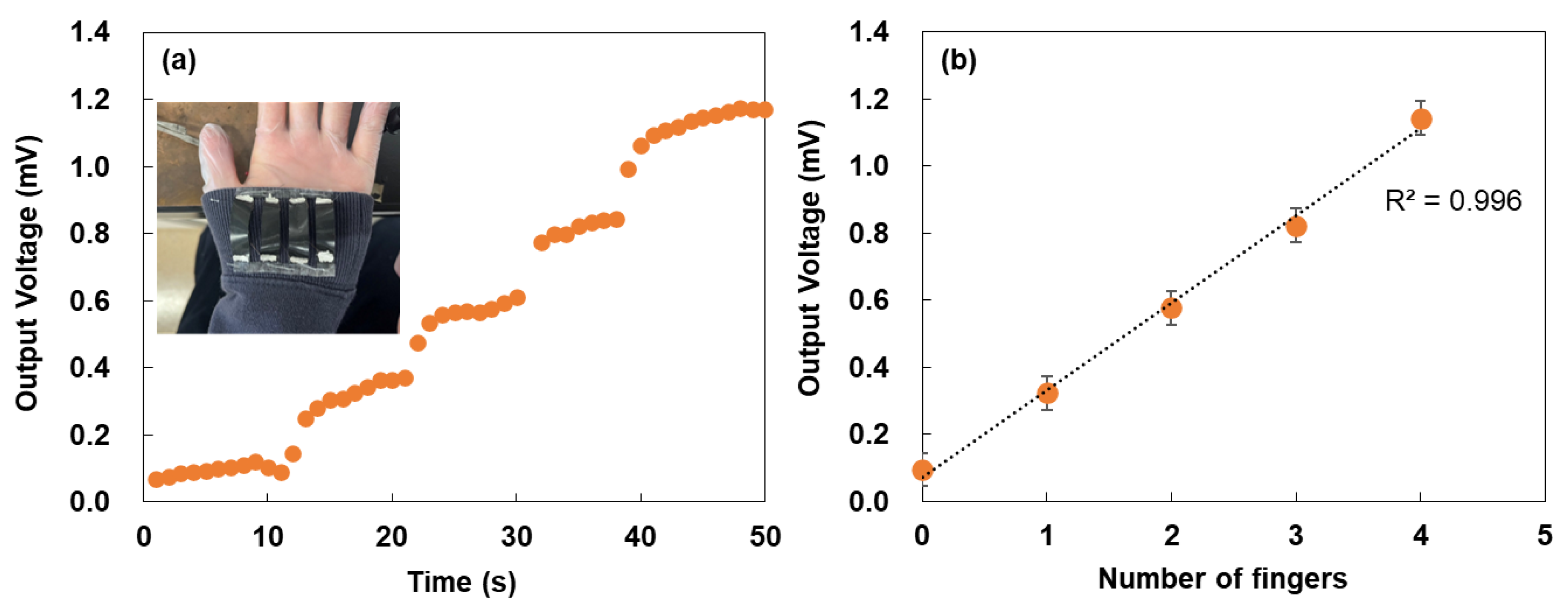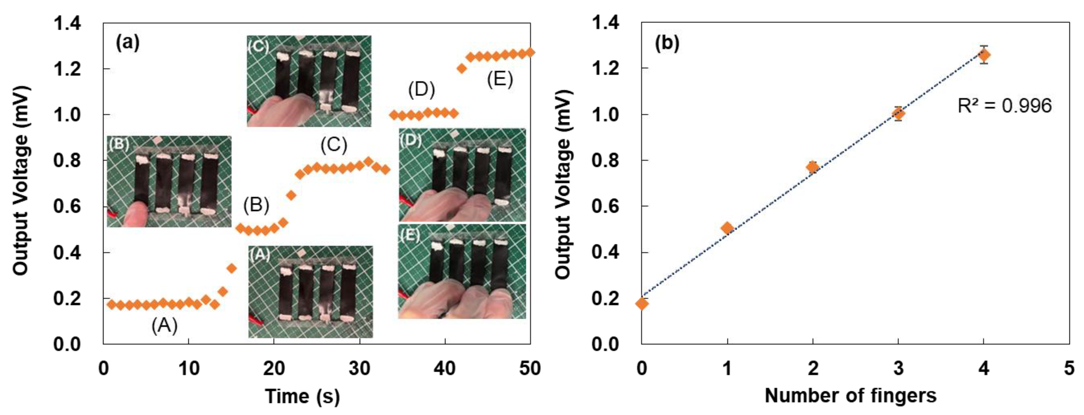 3.2. Fabrication and Performance of SWCNT-TEGs by Touching Fingertips