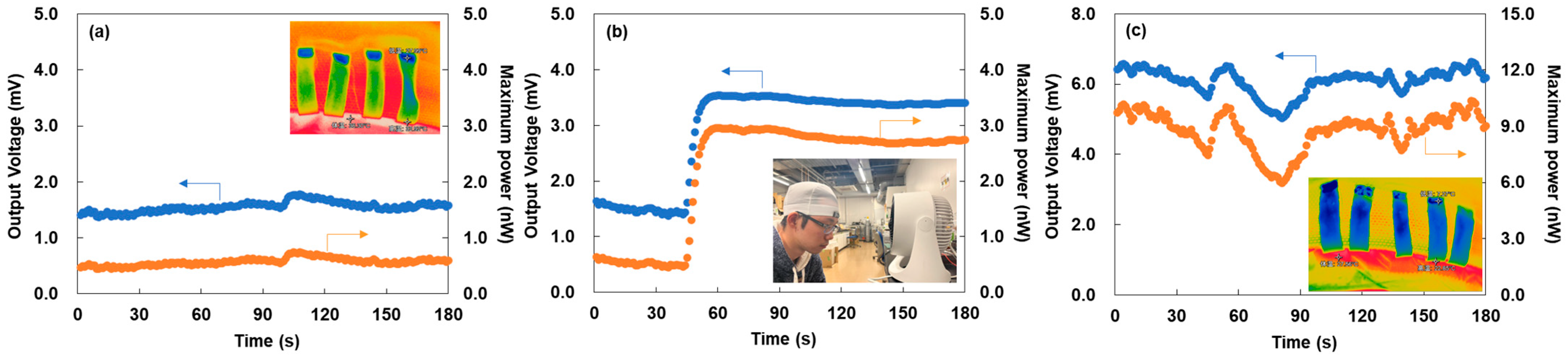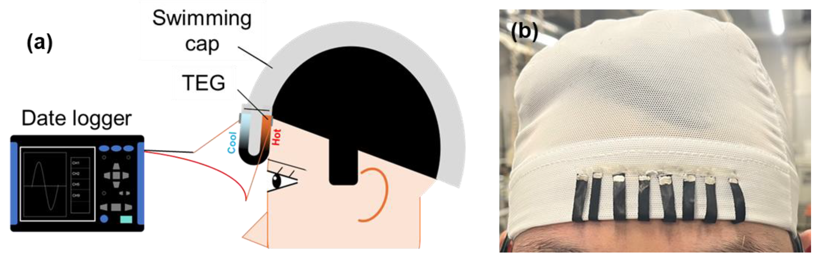 - Cai, Y.; Jin, P.; Wang, X.; Chen, C.; Fu, H.; Huang, J.; Deng, F. Nature-inspired wearable thermoelectric generator for body heat harvesting. Energy 2025, 338, 138899. [Google Scholar] [CrossRef]