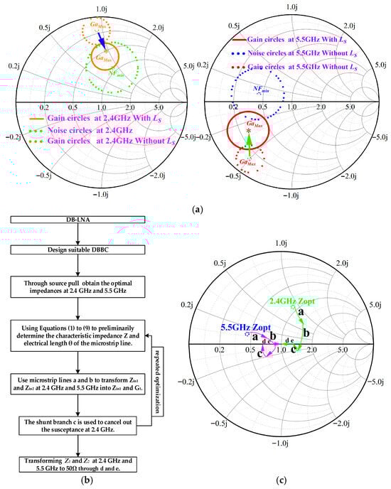 Zhang M, Cheng Z, Gong T, Zheng B, Zhang Z. Design of a Low-Noise 2.4/5.5 GHz Dual-Band LNA Based on Microstrip Structure. Micromachines. 2026; 17(1):18. https://doi.org/10.3390/mi17010018