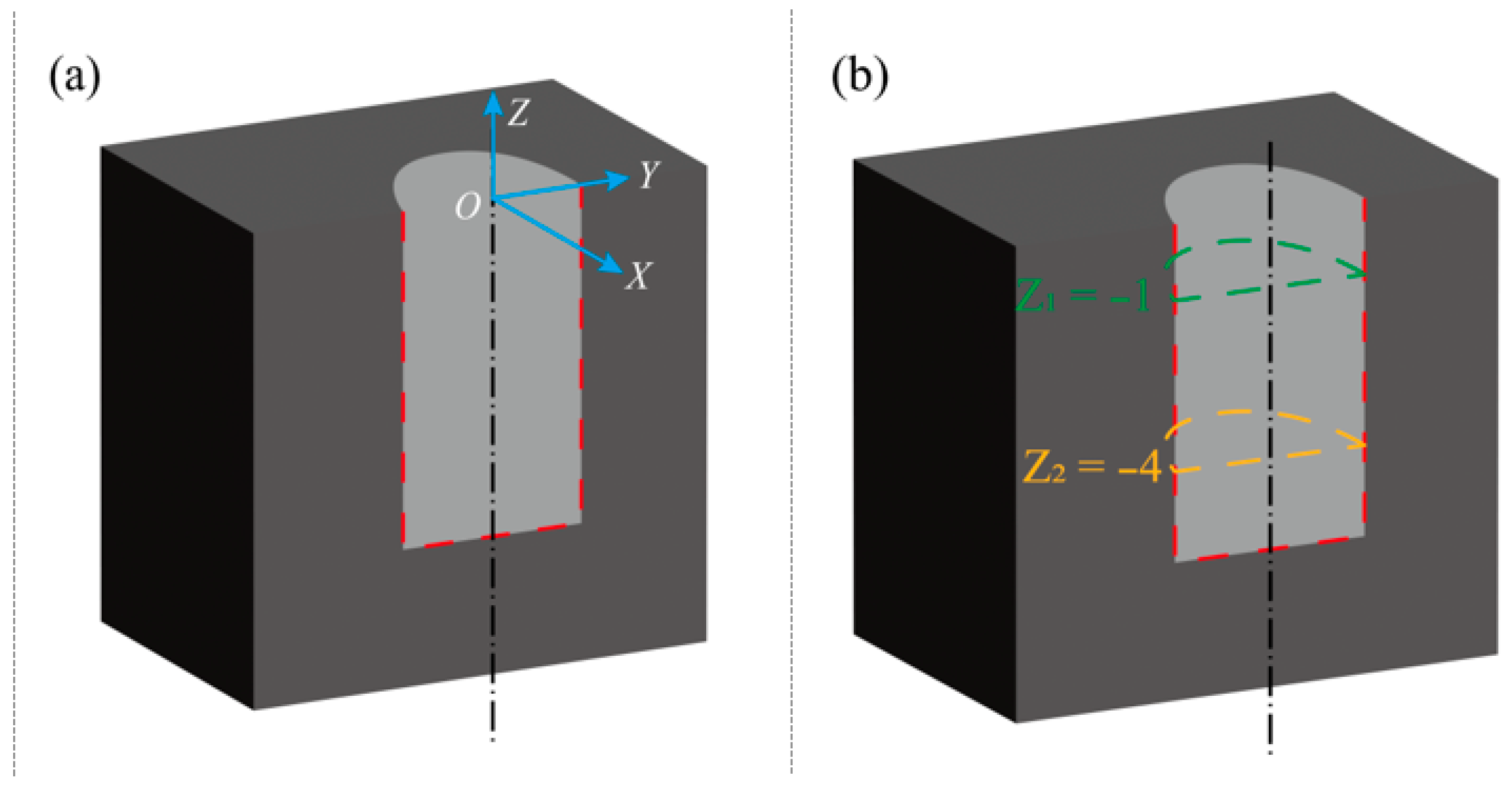 - Duan, X.; Peng, F.Y.; Yan, R.; Zhu, Z.; Li, B. Experimental study of the effect of tool orientation on cutter deflection in five-axis filleted end dry milling of ultrahigh-strength steel. Int. J. Adv. Manuf. Technol. 2015, 81, 653–666. [Google Scholar] [CrossRef]
