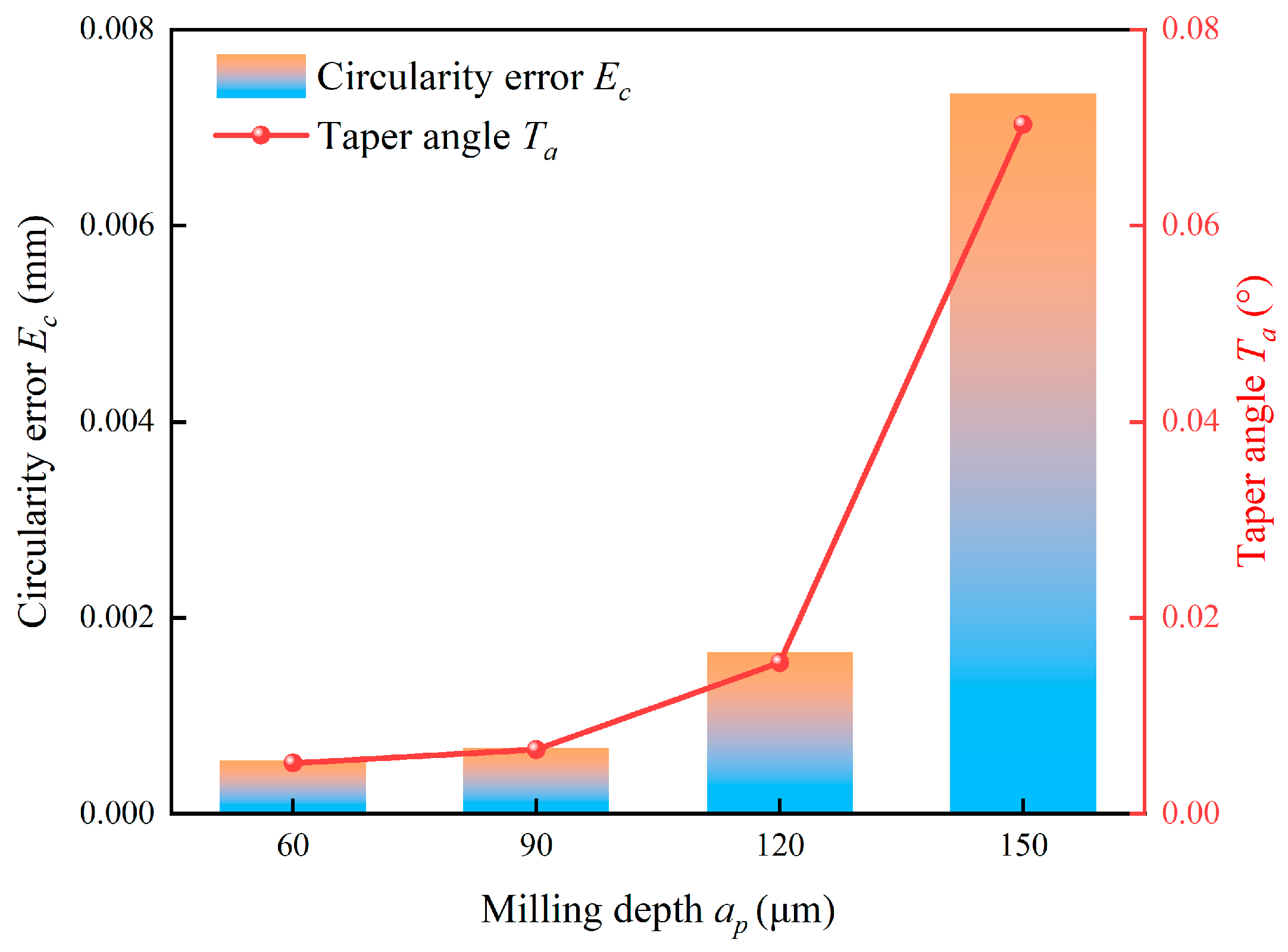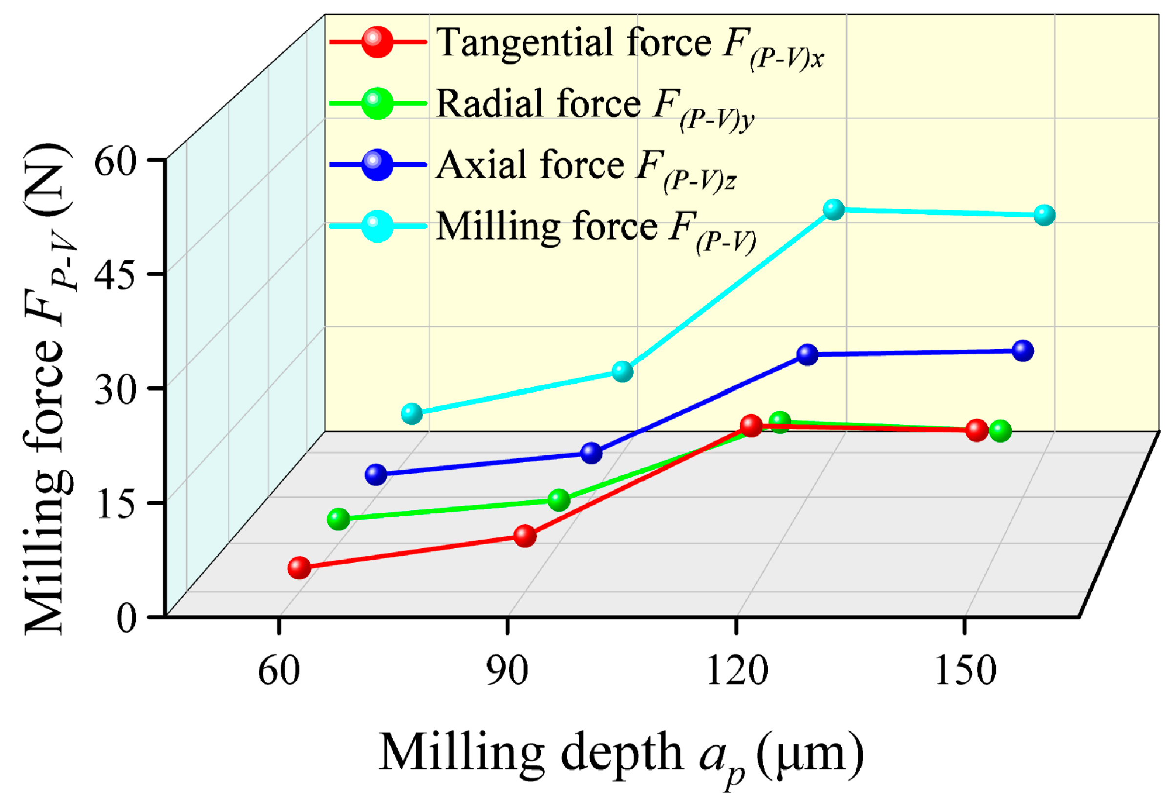 | Milling depth ap (μm) | 60, 90, 120, 150 |