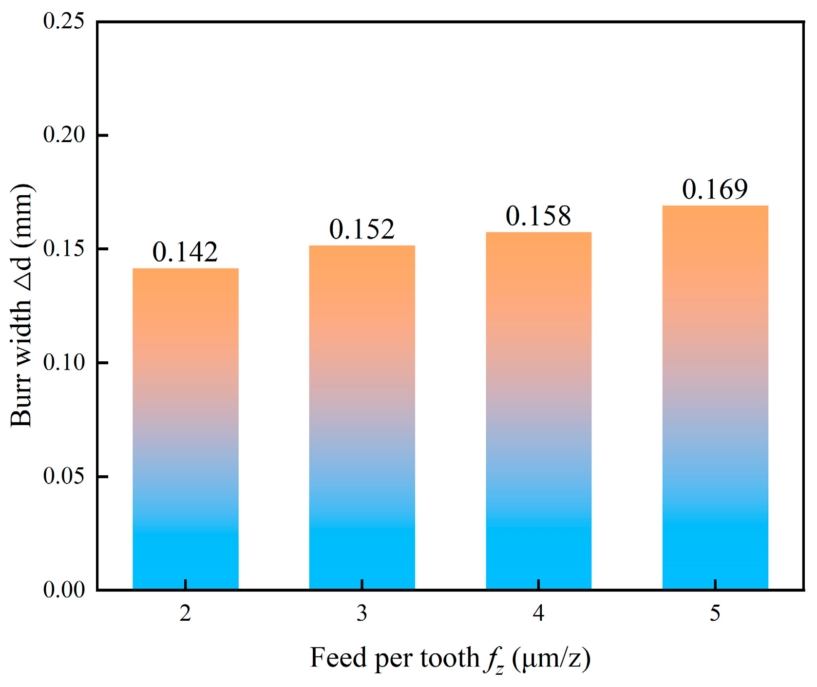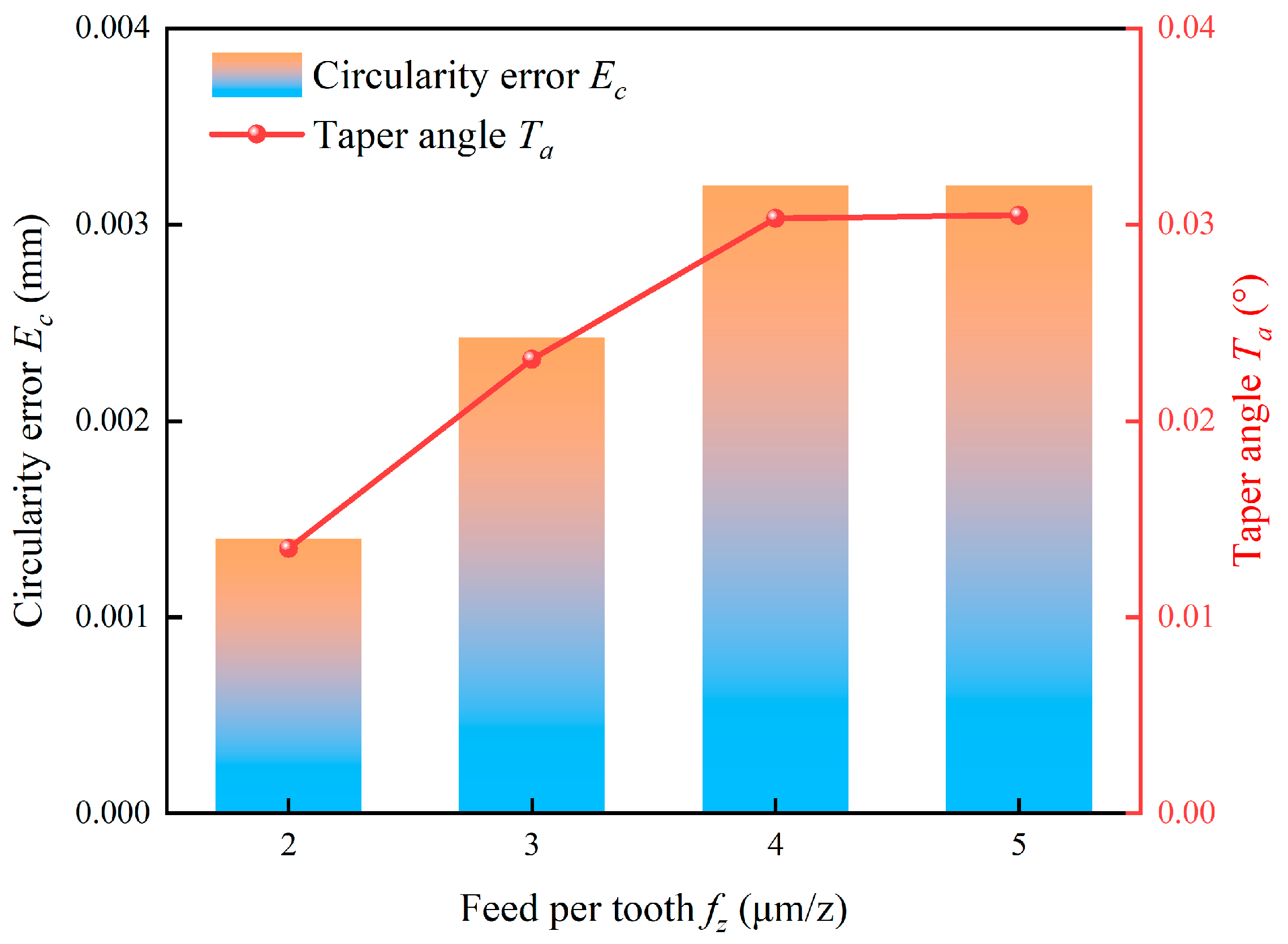 | Feed per tooth fz (μm/z) | 2, 3, 4, 5 |