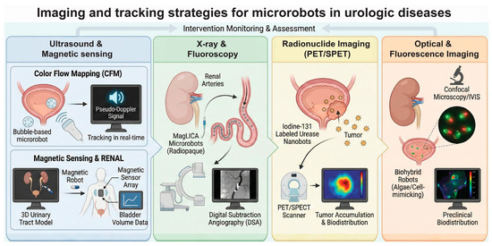 Finally, the integration of microrobotics into urology introduces a level of precision and multifunctionality unattainable with conventional tools. Through responsiveness to external steering fields (magnetic control) or internal chemical gradients (chemotaxis), microrobots can be guided to specific focal lesions with high spatial resolution [86,87]. This is crucial for reaching hard-to-access anatomical locations, such as a specific lower renal calyx containing a stone fragment or a localized upper tract tumor, while sparing healthy tissue from exposure to toxic agents. Beyond simple targeting, these agents function as versatile micro-tools capable of complex “theranostic” tasks. They can be engineered to perform mechanical ablation, such as scrubbing bacterial biofilms from indwelling stents, or chemical modulation, such as elevating local pH to dissolve uric acid stones [112,113,114]. Additionally, they can serve as micro-grippers for diagnostic biopsy or carriers for imaging contrast agents, effectively closing the loop between diagnosis and therapy in a single, minimally invasive procedure [115,116].
