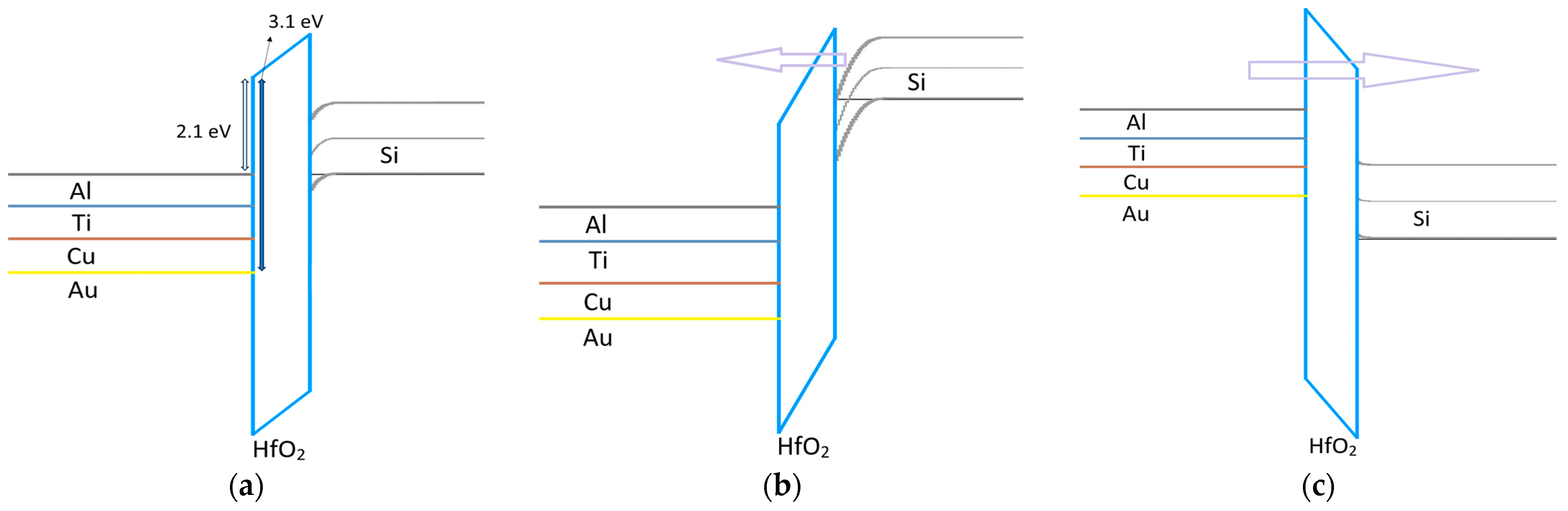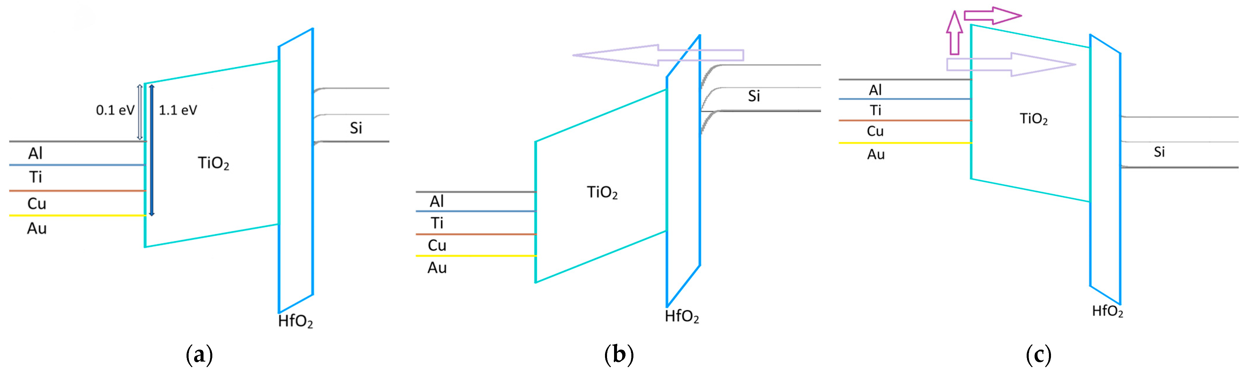 4.1. Rectifying Mechanism of Bilayer RRAM