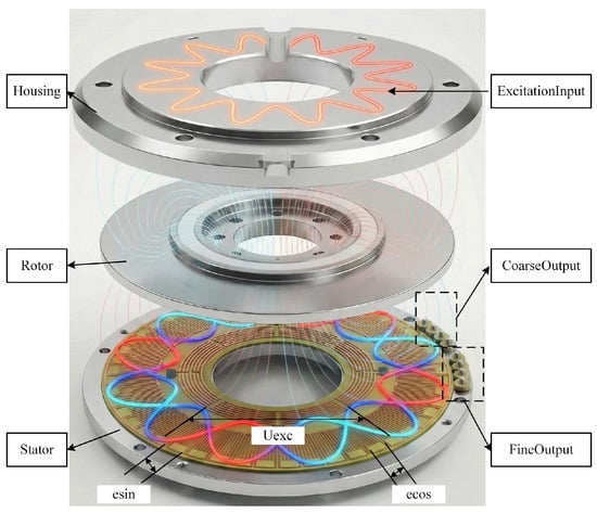 Precise angular measurement plays a fundamental role in modern servo systems, aerospace attitude control, robotics, and precision instrumentation, where the accuracy, stability, and real-time response of angular feedback directly determine overall system performance and reliability [1,2,3]. Common angular position sensors include optical encoders, resolvers, capacitive sensors, and inductosyns [4,5,6,7]. Among these, optical encoders can provide very high resolution; however, their performance is highly sensitive to environmental factors such as temperature variation, vibration, contamination, and electromagnetic interference, which may lead to accuracy degradation or signal loss under harsh operating conditions [8,9].