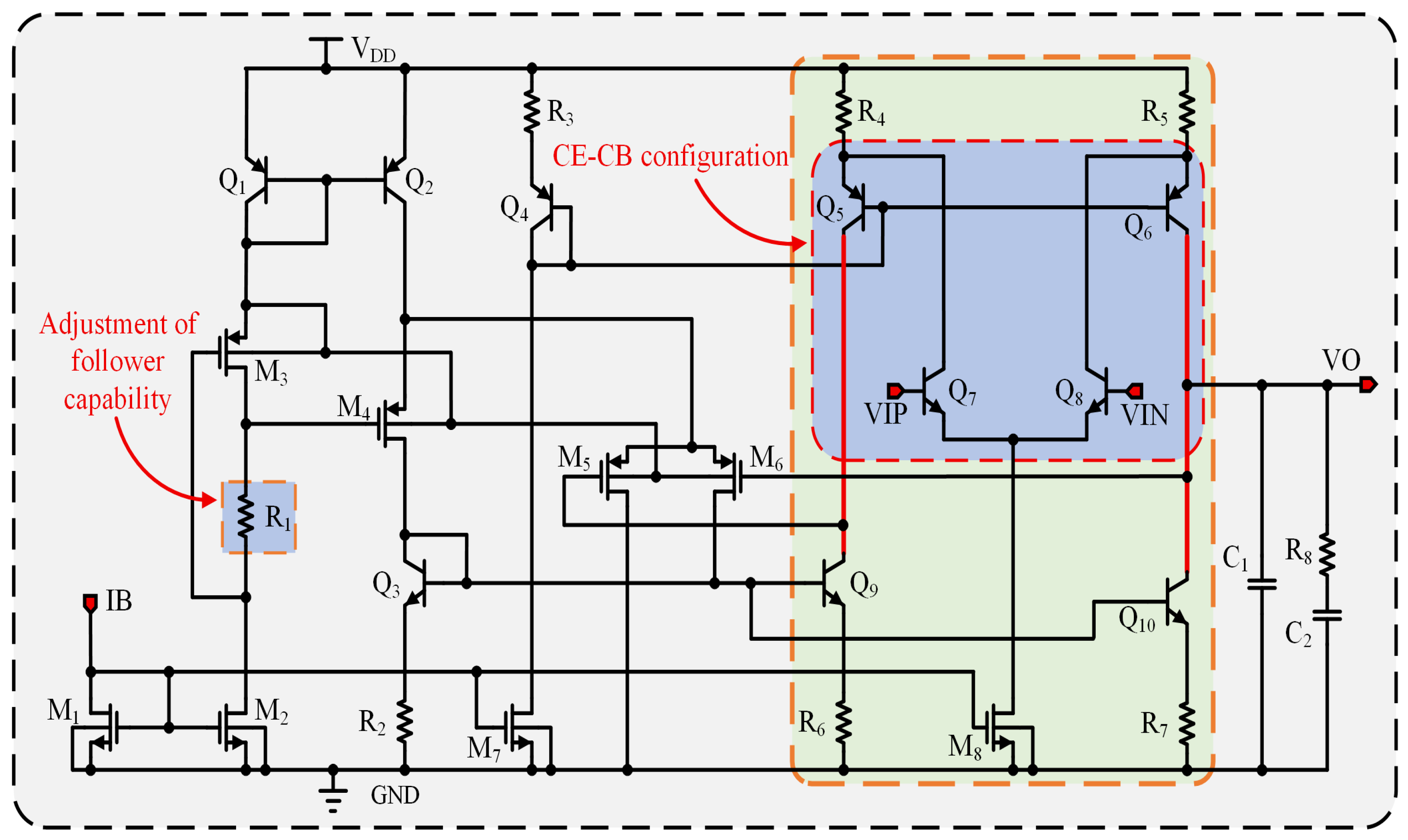 - Xue, W.; Yu, X.; Zhang, Y.; Ming, X.; Fang, J.; Ren, J. A 3.0-V 4.2-μA 2.23-ppm/°C BGR with Cross-Connected NPNs and Base-Current Compensation. Microelectron. J. 2024, 152, 106354. [Google Scholar] [CrossRef]