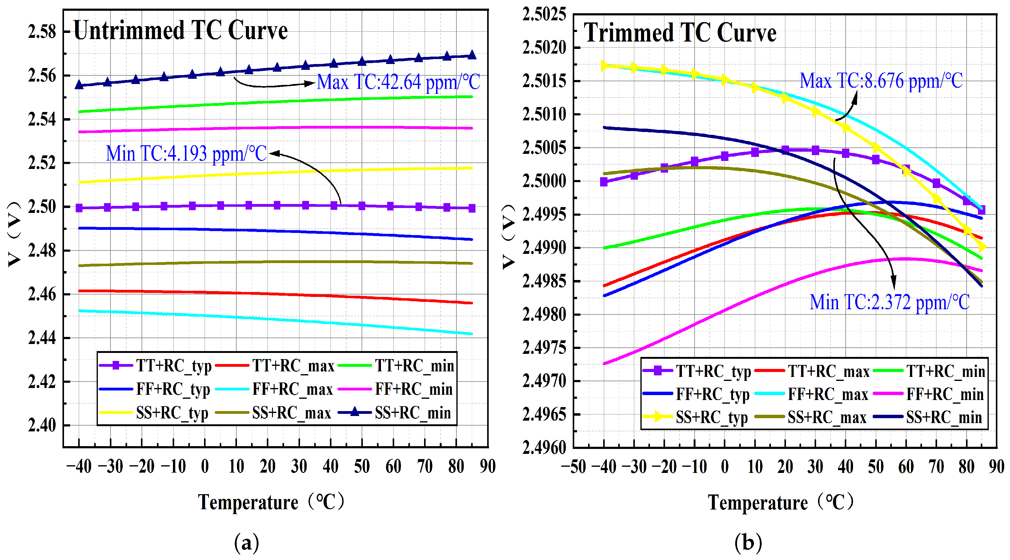 - Zhuang, H.; Chen, X.; Zhang, E.; Li, Q. High-Accuracy Bandgap Reference of <20 ppm/·C: A Review. Chips 2025, 4, 5. [Google Scholar] [CrossRef]