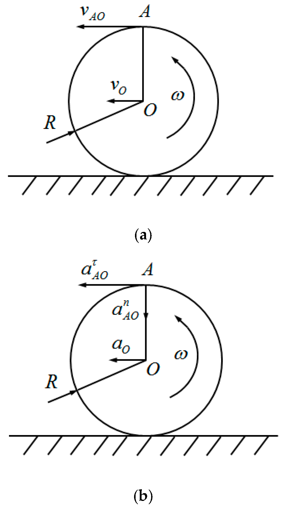 With the fixed end of the piezoelectric vibrator as the moving point, the ground as the fixed reference system, and the rim as the moving reference system, the rim is observed to move in a circular motion. The velocity and acceleration of the circular motion of the wheel rim were analyzed as shown in