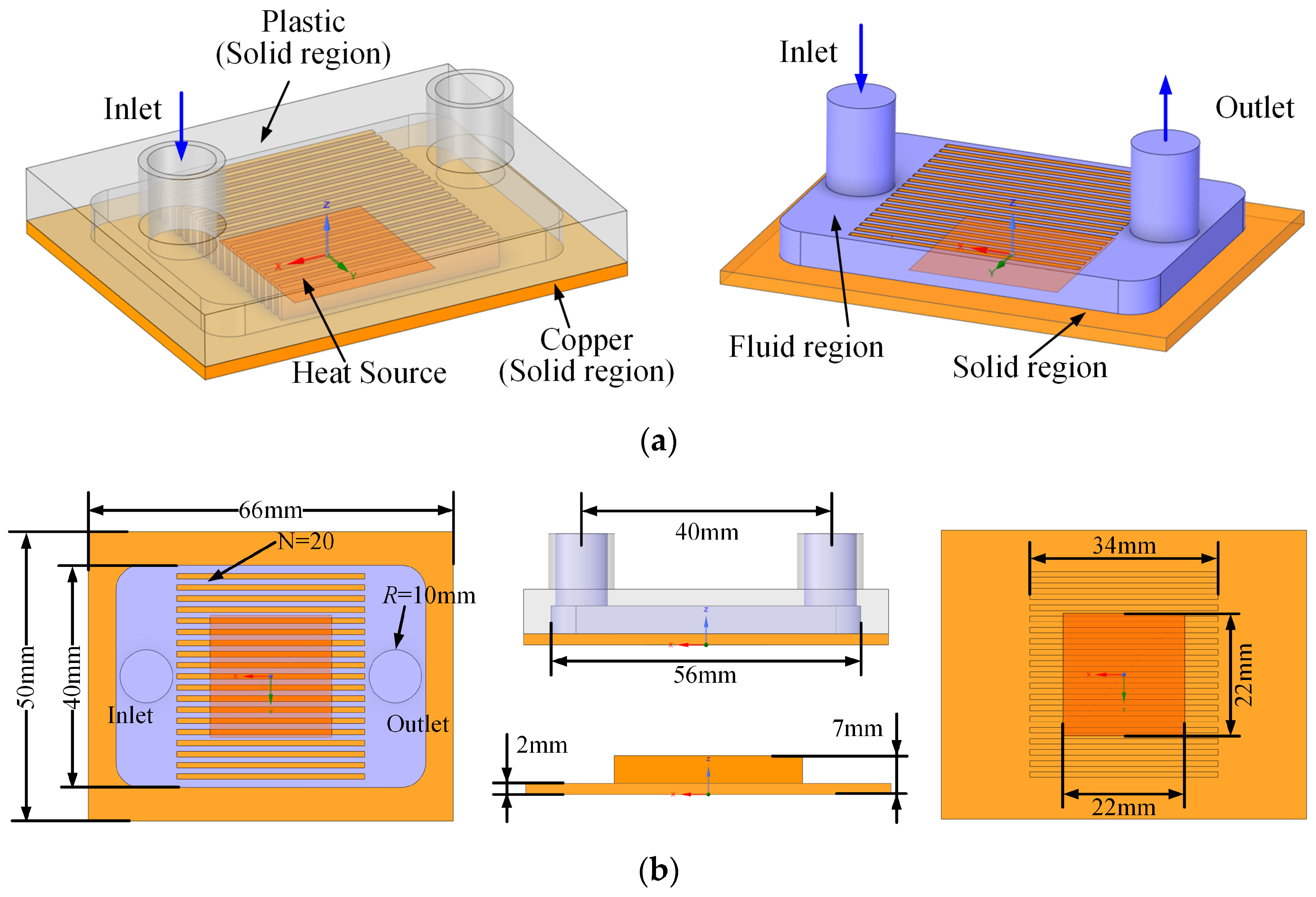- Eslami, M.; Derakhshanpour, K.; Kamali, R. Effect of rib shape and fillet radius on thermal-hydrodynamic performance of microchannel heat sinks: A CFD study. Int. Commun. Heat Mass Transf. 2020, 119, 104928. [Google Scholar] [CrossRef]