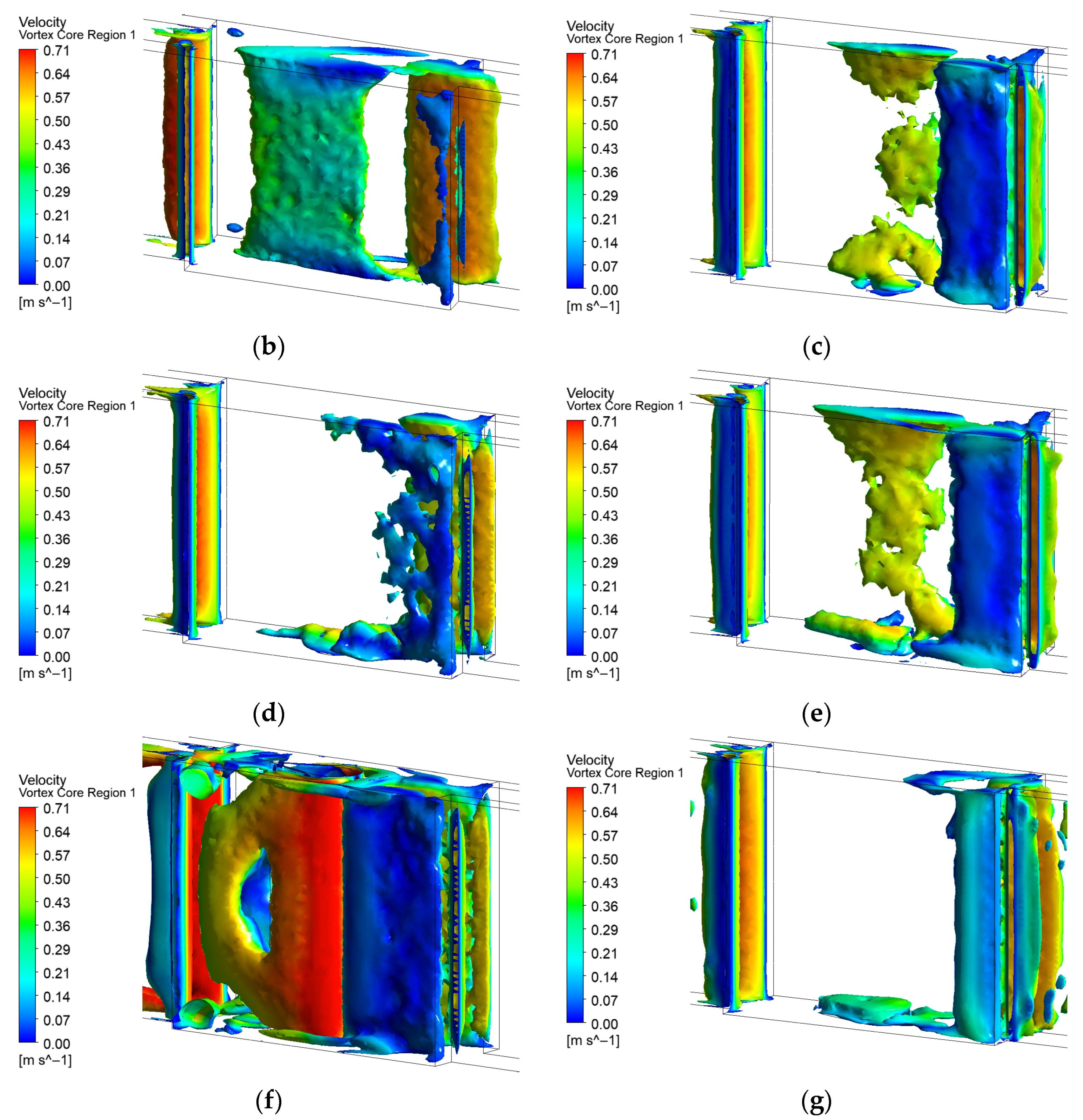 3.1. Vortex and Flow Field Distributions of Different Turbulator Configurations