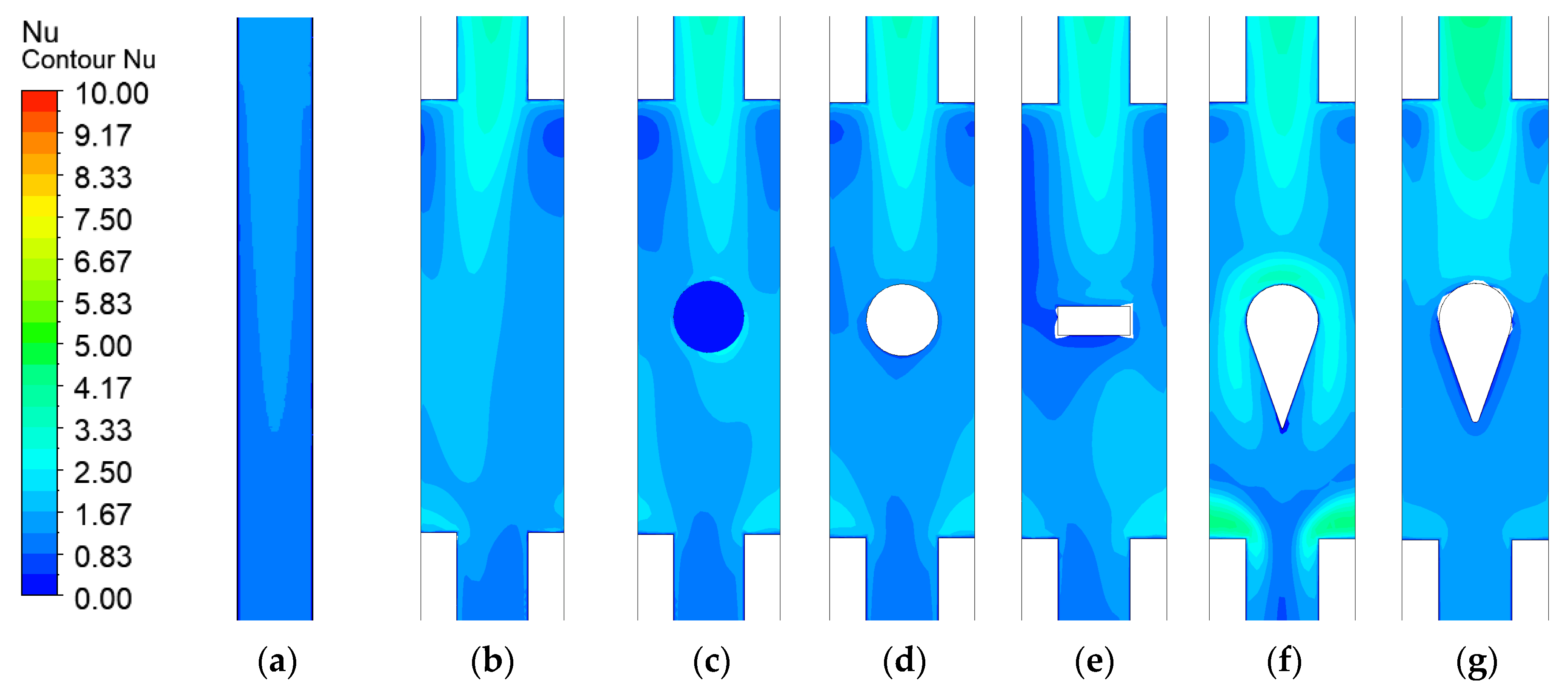 3.2. Thermal Performance of the Bottom Wall with Various Turbulator