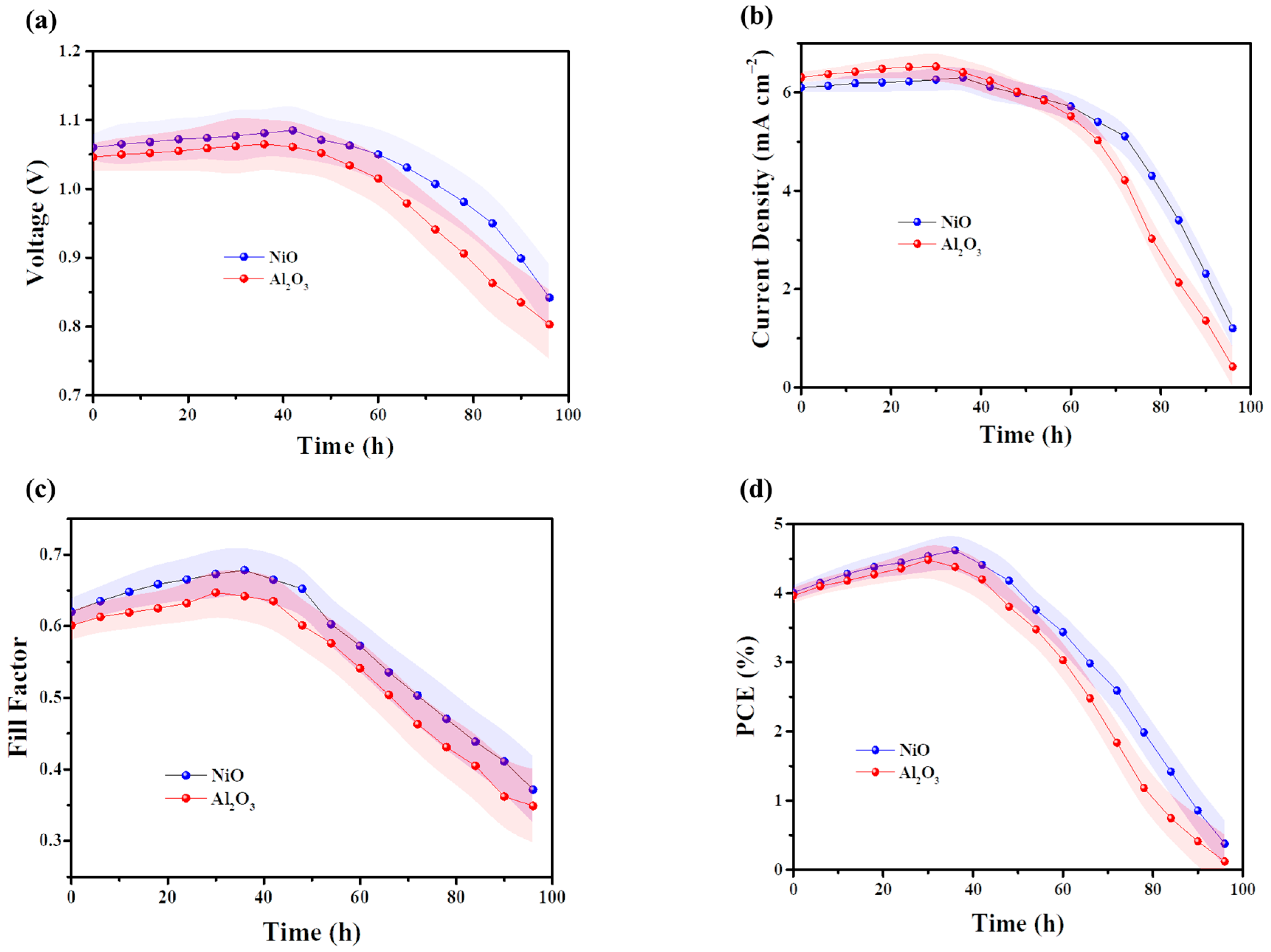 | pn tandem solar cell (NiO) | 1060 | 6.11 | 0.62 | 4.02 |