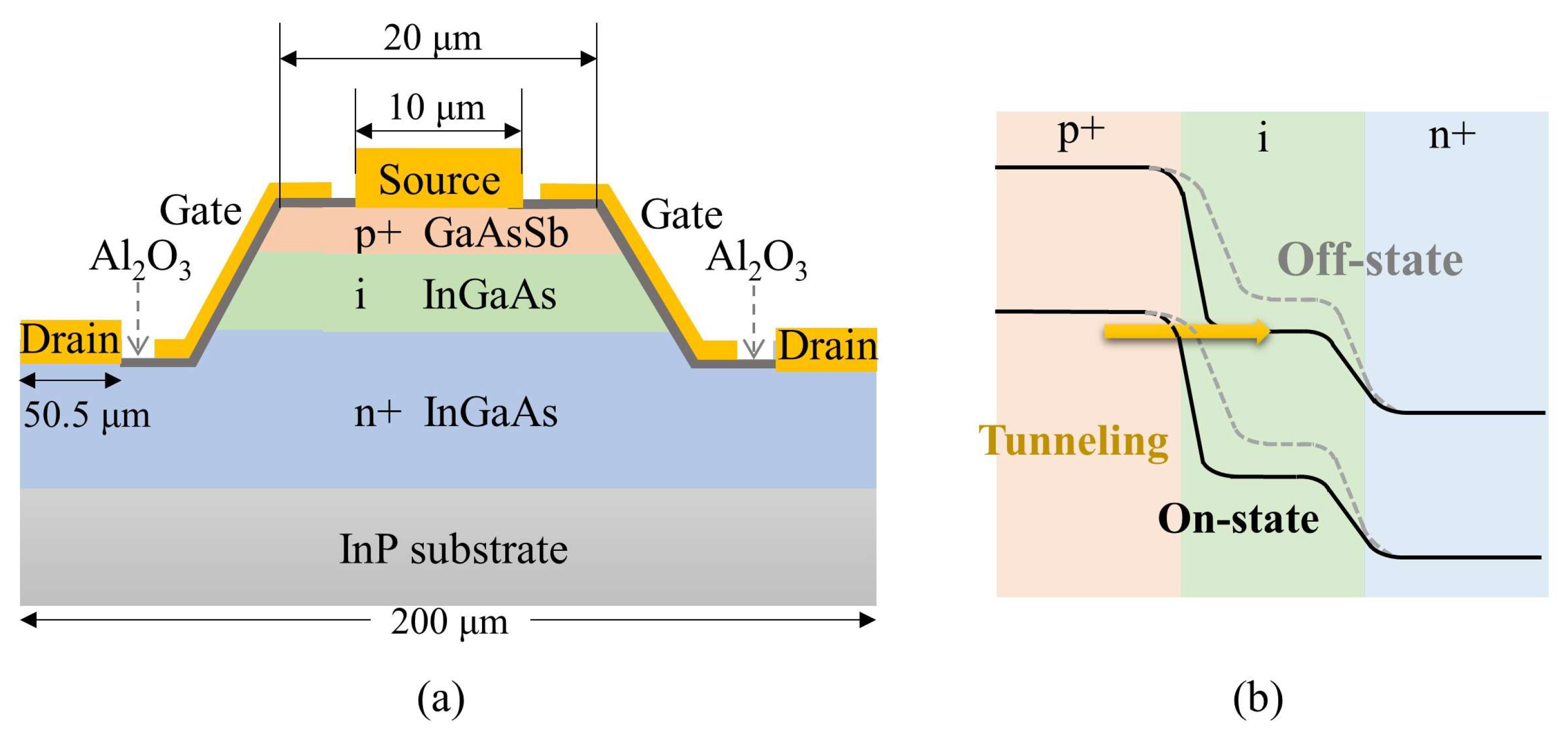 - Allemang, C.R.; Anderson, E.M.; Gao, X.; Arose, C.; Mendez, J.P.; Weingartner, T.A.; Campbell, D.M.; Muhowski, A.J.; Lu, T.-M.; Misra, S. Next-generation tunnel FETs: Exploring material perspectives and areal tunneling configurations. Mater. Quantum Technol. 2025, 5, 042002. [Google Scholar] [CrossRef]