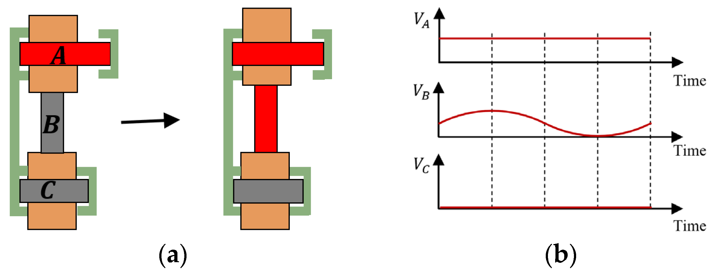 - Chen, Y.; Wang, Z.; Yan, P. An Orthogonal and Stereoscopic Amplifying Mechanism with Nonparasitic Displacement for Parallel Piezoelectric Inchworm Actuators. In Proceedings of the 2024 20th IEEE/ASME International Conference on Mechatronic and Embedded Systems and Applications (MESA), Genova, Italy, 2–4 September 2024; IEEE: Piscataway, NJ, USA, 2024; pp. 1–6. [Google Scholar]