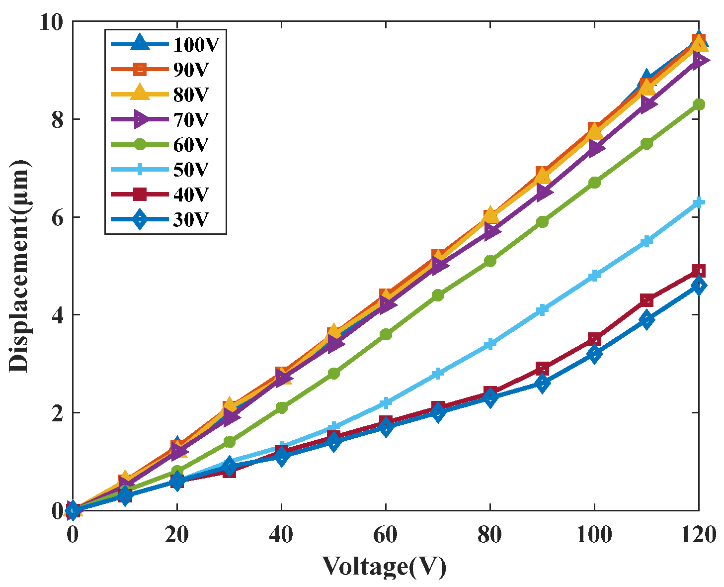 - Yu, H.; Deng, J.; Liu, Y.; Wang, Y. Piezoelectric hybrid actuation mode to improve speeds in cross-scale micromanipulations. Int. J. Mech. Sci. 2023, 240, 107943. [Google Scholar] [CrossRef]