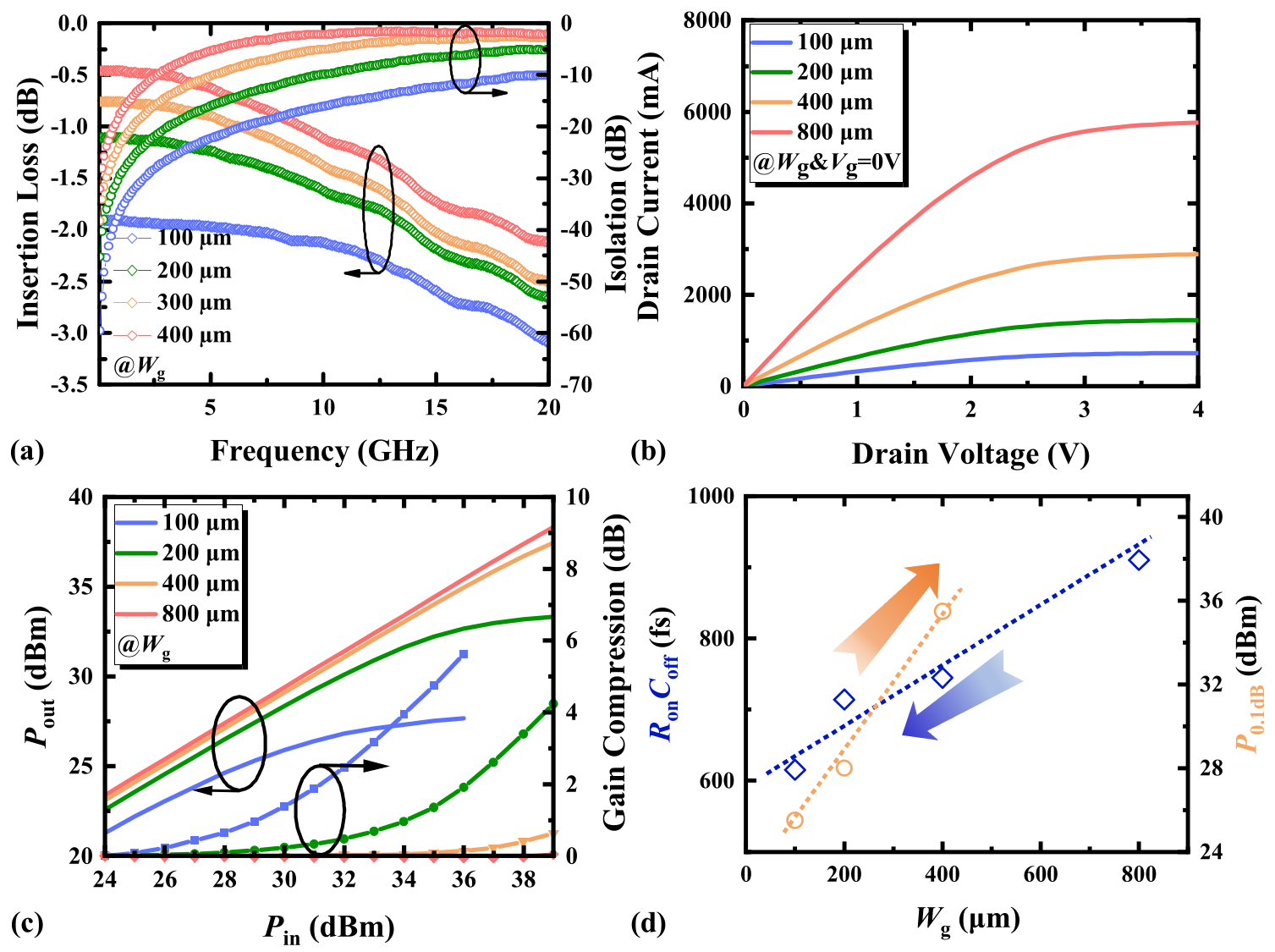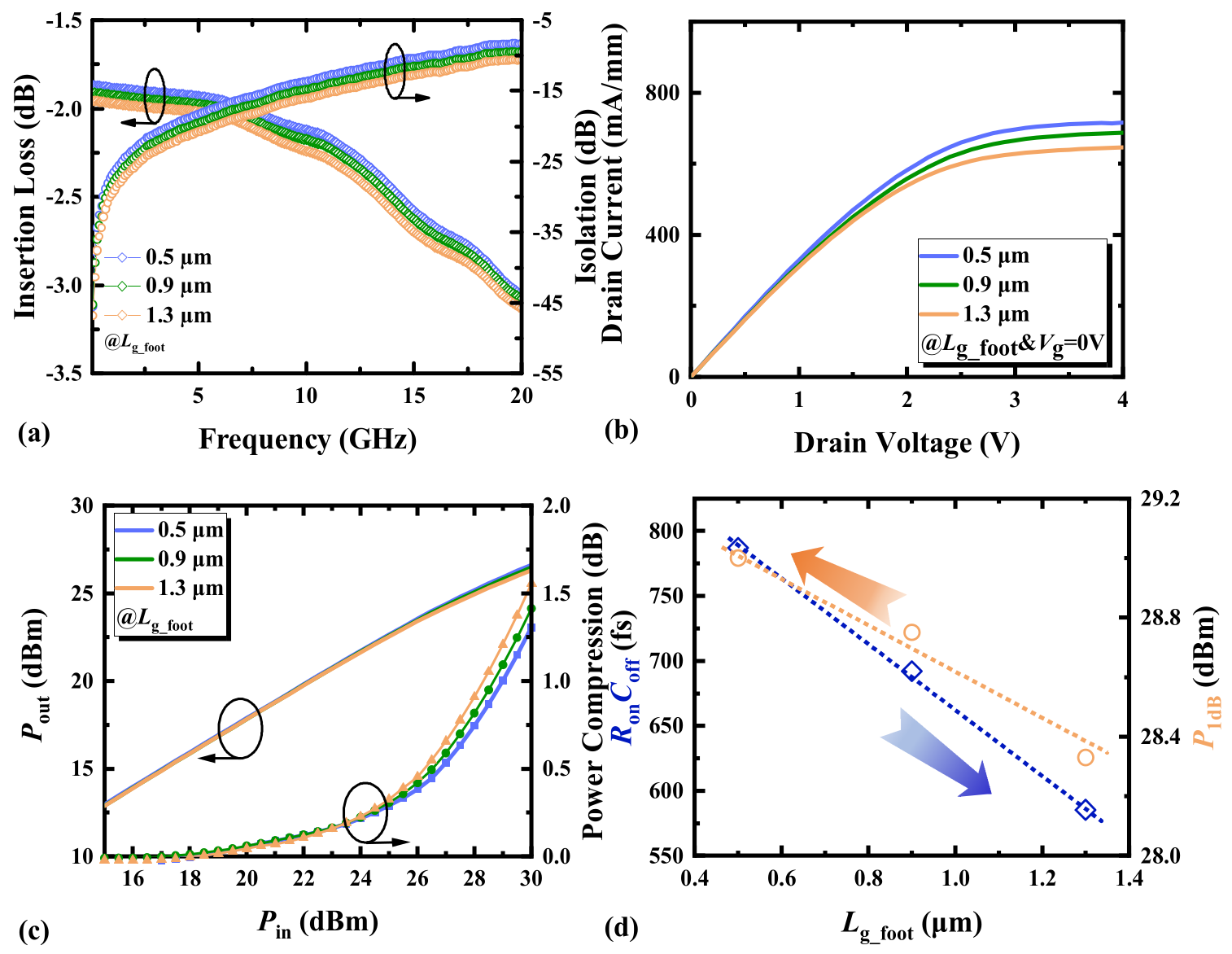 Chicago/Turabian StyleZou, Xu, Meng Zhang, Ling Yang, Bin Hou, Mei Wu, Chupeng Yi, Hao Lu, Mao Jia, Qian Yu, Yutong Jiang, and et al. 2026. "Structure-Dependent Parameter Trade-Off Optimization on RonCoff and Power Compression of AlGaN/GaN HEMTs for RF Switch Application" Micromachines 17, no. 2: 163. https://doi.org/10.3390/mi17020163