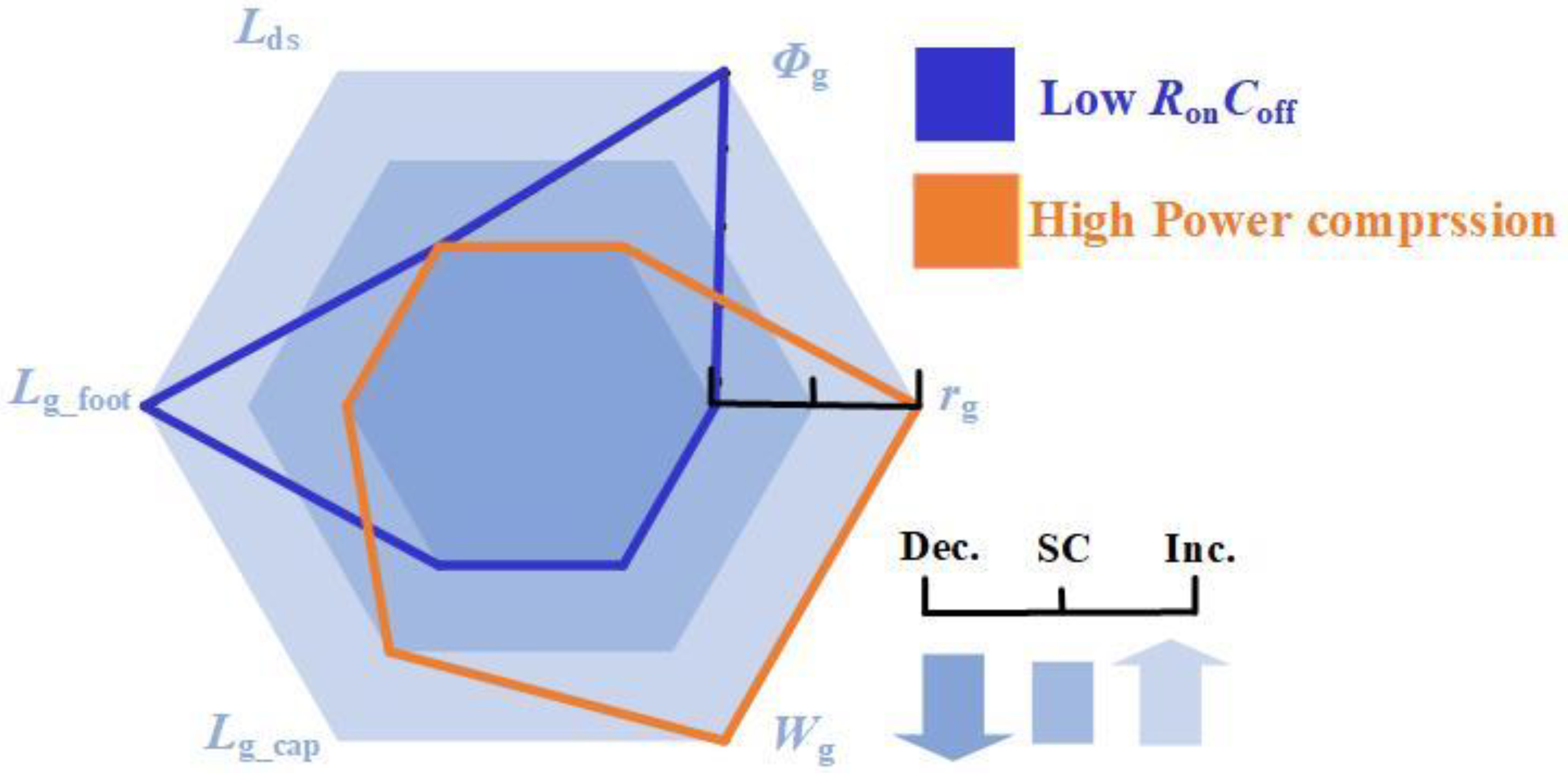 | No. | Lds/μm | Lg_foot/μm | Lg_cap/μm | Wg/μm | rg | Schottky Contact Gate Metal |