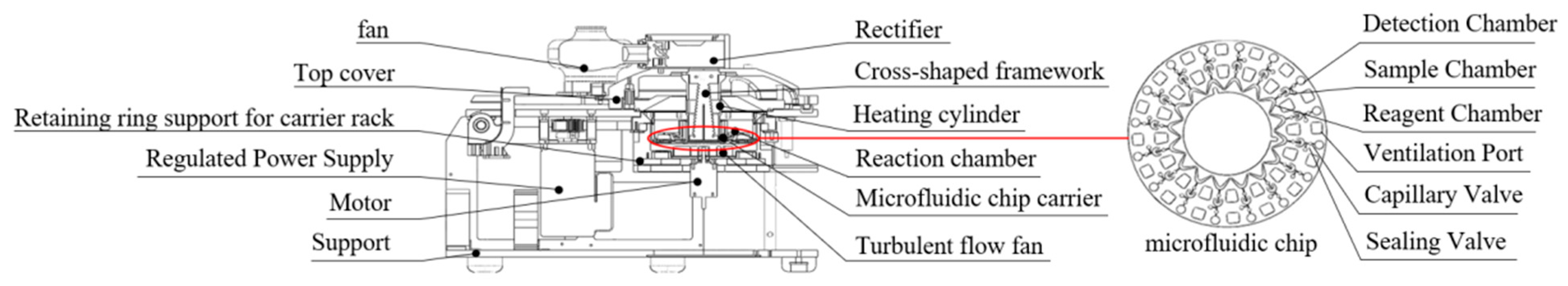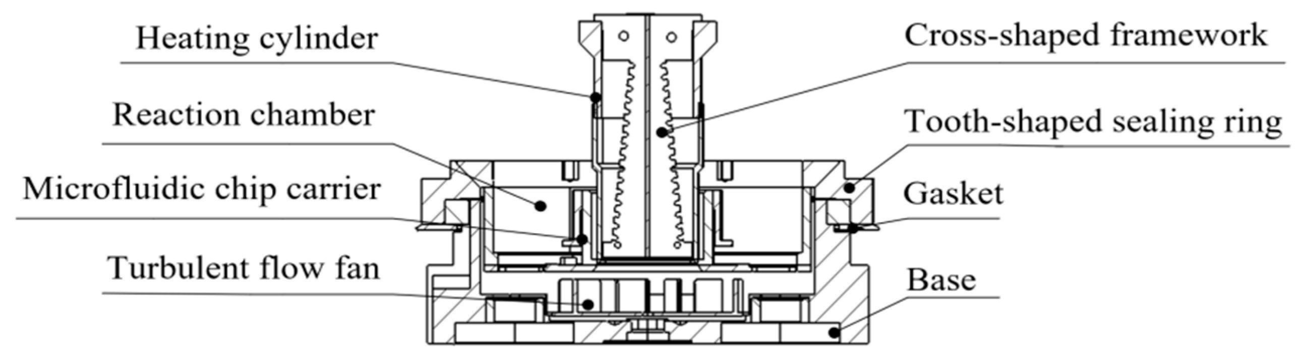 - An, Y.-Q.; Huang, S.-L.; Xi, B.-C.; Gong, X.-L.; Ji, J.-H.; Hu, Y.; Ding, Y.-J.; Zhang, D.-X.; Ge, S.-X.; Zhang, J.; et al. Ultrafast Microfluidic PCR Thermocycler for Nucleic Acid Amplification. Micromachines 2023, 14, 658. [Google Scholar] [CrossRef] [PubMed]