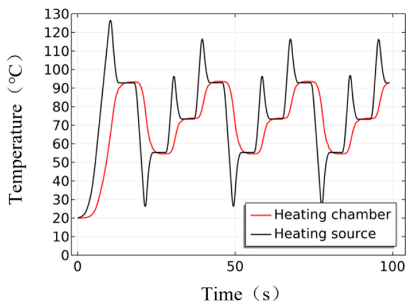 - Yang, Z.; Zhang, J.; Tong, X.; Li, W.; Liang, L.; Liu, B.; Chen, C. Simulation of Rapid Thermal Cycle for Ultra-Fast PCR. Sensors 2022, 22, 9990. [Google Scholar] [CrossRef]