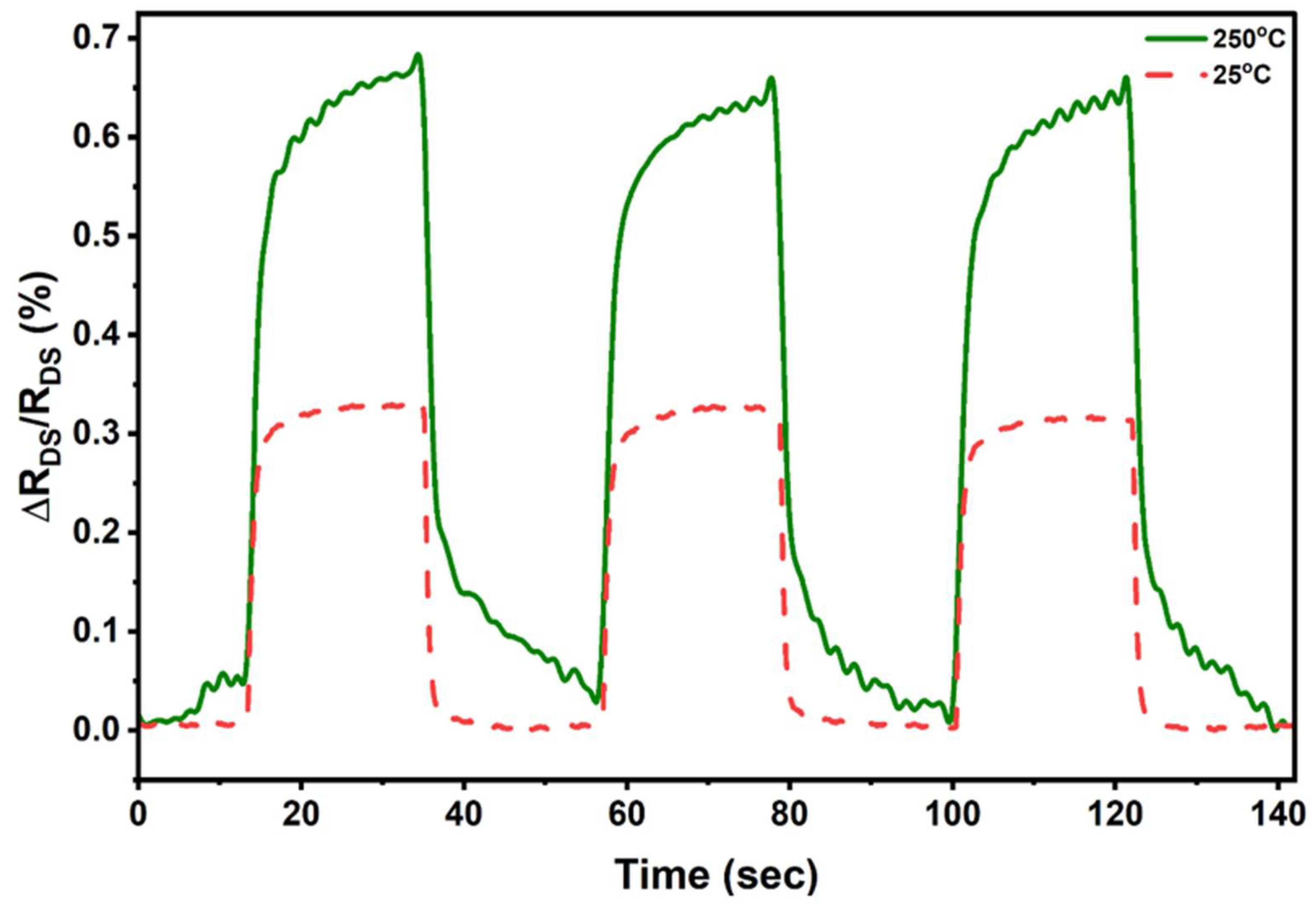 3.4. Sensor Characterization at Elevated Temperatures