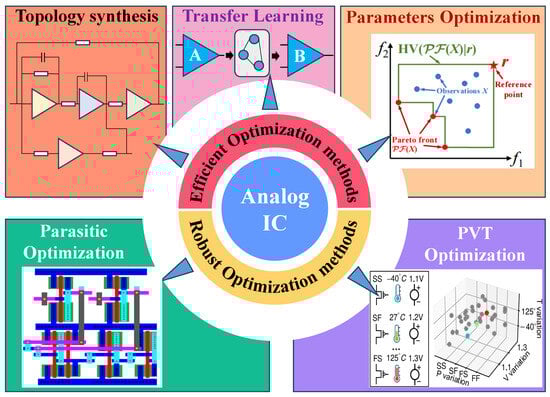 - Yang, Y.; Su, J.; Lai, X.; Chen, D.; Li, D.; Yang, Y. Recent Developments and Perspectives on Optimization Design Methods for Analog Integrated Circuits. Symmetry 2025, 17, 529. [Google Scholar] [CrossRef]