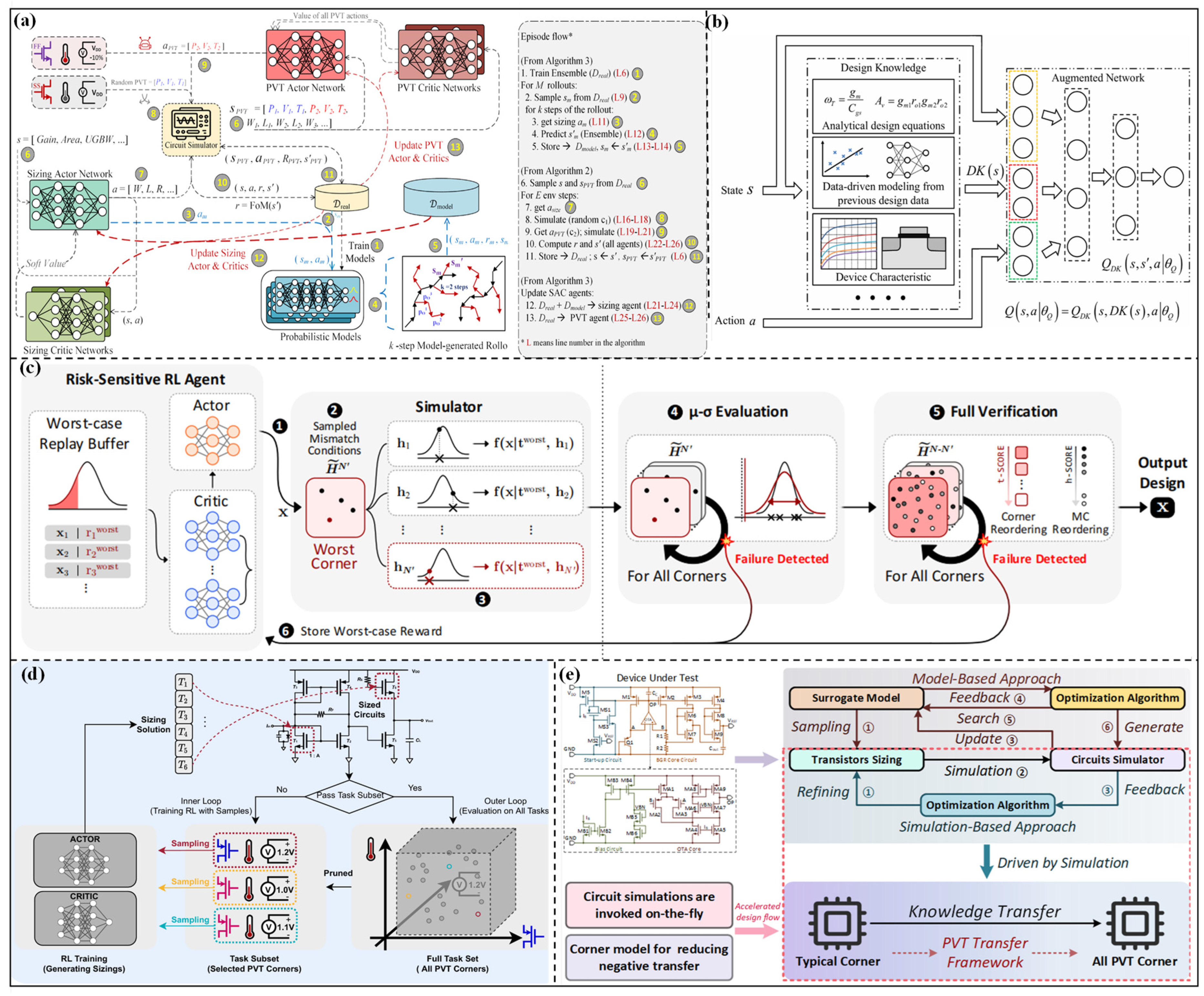 - Kim, D.; Park, J.; Shin, C.; Jung, J.; Shin, K.; Baek, S.; Heo, S.; Kim, W.; Jeong, I.; Cho, J.; et al. GLOVA: Global and Local Variation-Aware Analog Circuit Design with Risk-Sensitive Reinforcement Learning. In Proceedings of the 2025 62nd ACM/IEEE Design Automation Conference (DAC), San Francisco, CA, USA, 22–25 June 2025; pp. 1–7. [Google Scholar]
