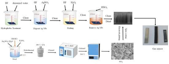 Preparation process of the WO3/SiNWs composite gas sensors.