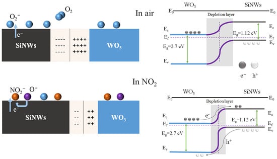 Schematic illustration of the gas sensing mechanism in WO3/SiNWs heterostructure.