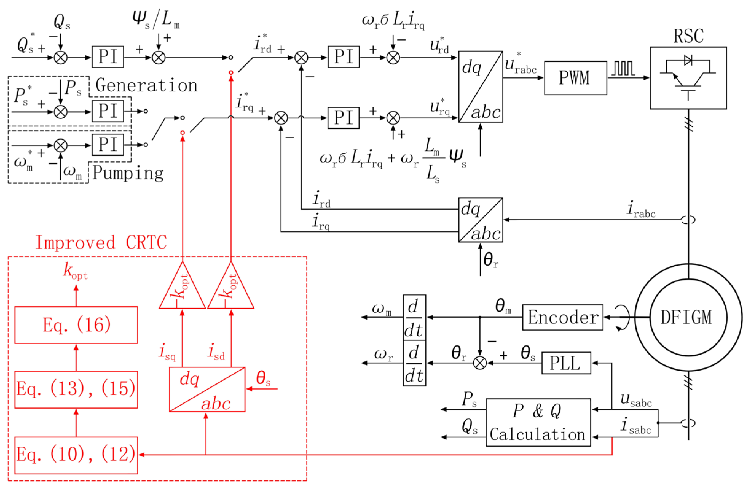 - The scheme of CRTC method is developed, in which the current tracking coefficient is optimized based on particle swarm optimization (PSO) algorithm under rotor voltage and current constraints during LVRT conditions.