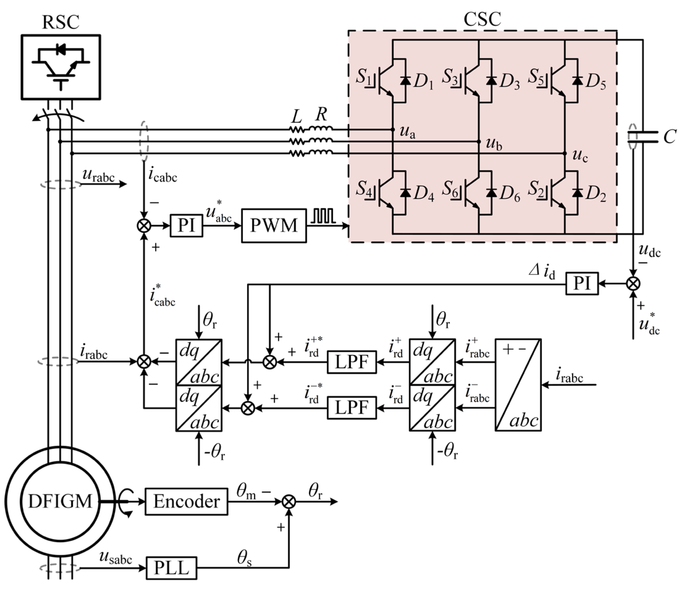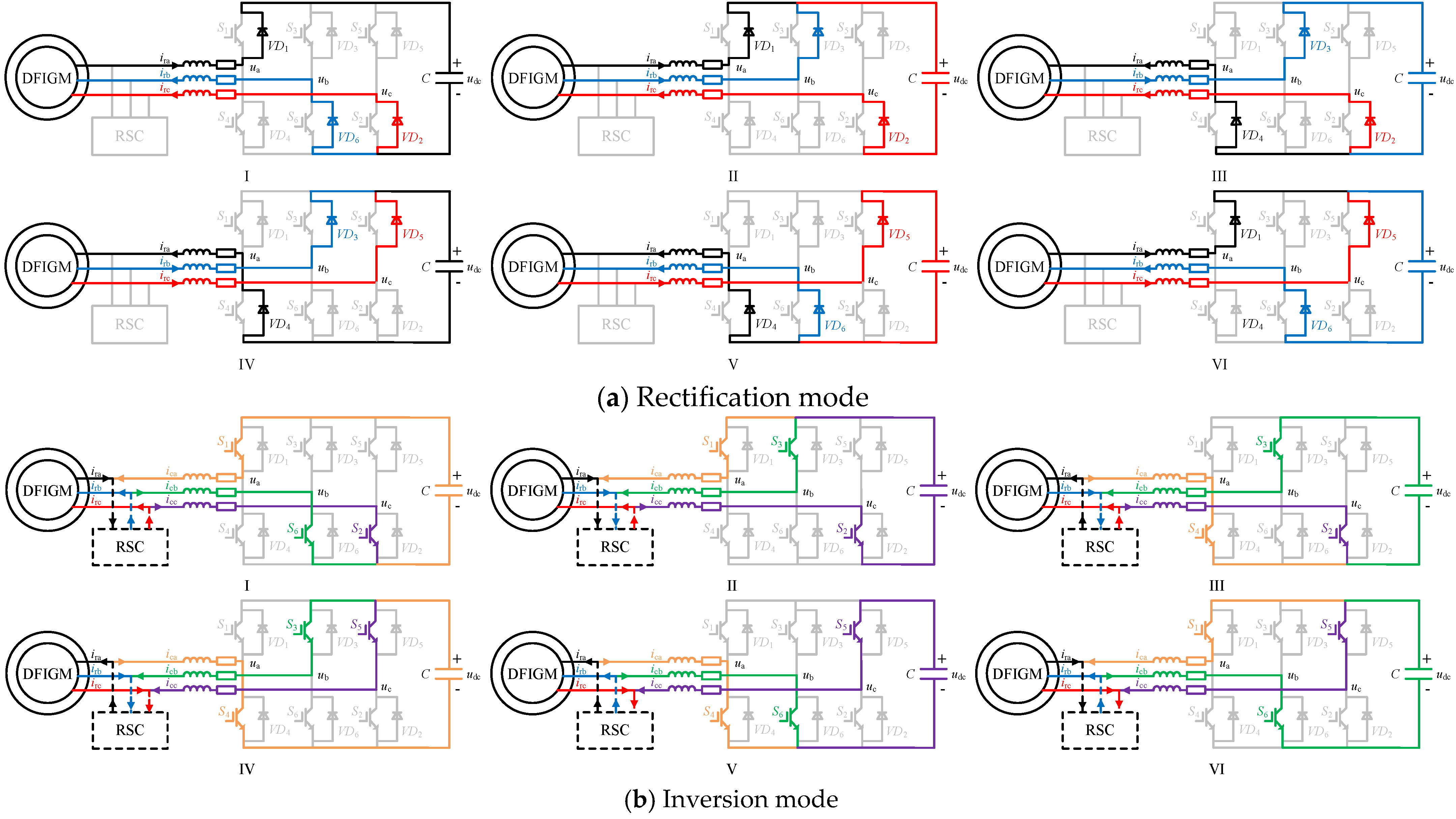 - Gu, J.; Zhao, R.; He, J.; Xu, J.; Yan, Q.; Sun, C.; Liu, H. Enhanced excitation converter with parallel/series DC-link based on TAB for DFIG to improve the LVRT capability under severe grid faults. IEEE Trans. Power Electron. 2023, 38, 12304–12308. [Google Scholar] [CrossRef]