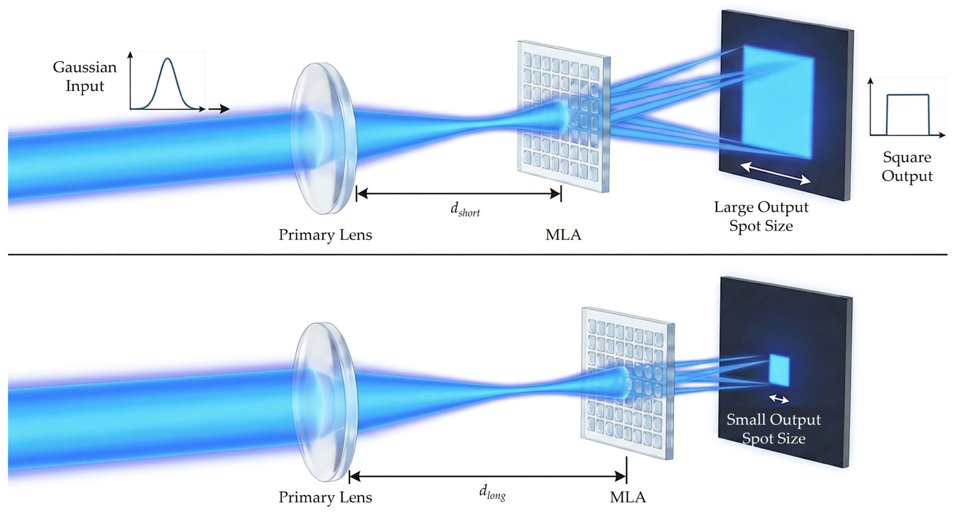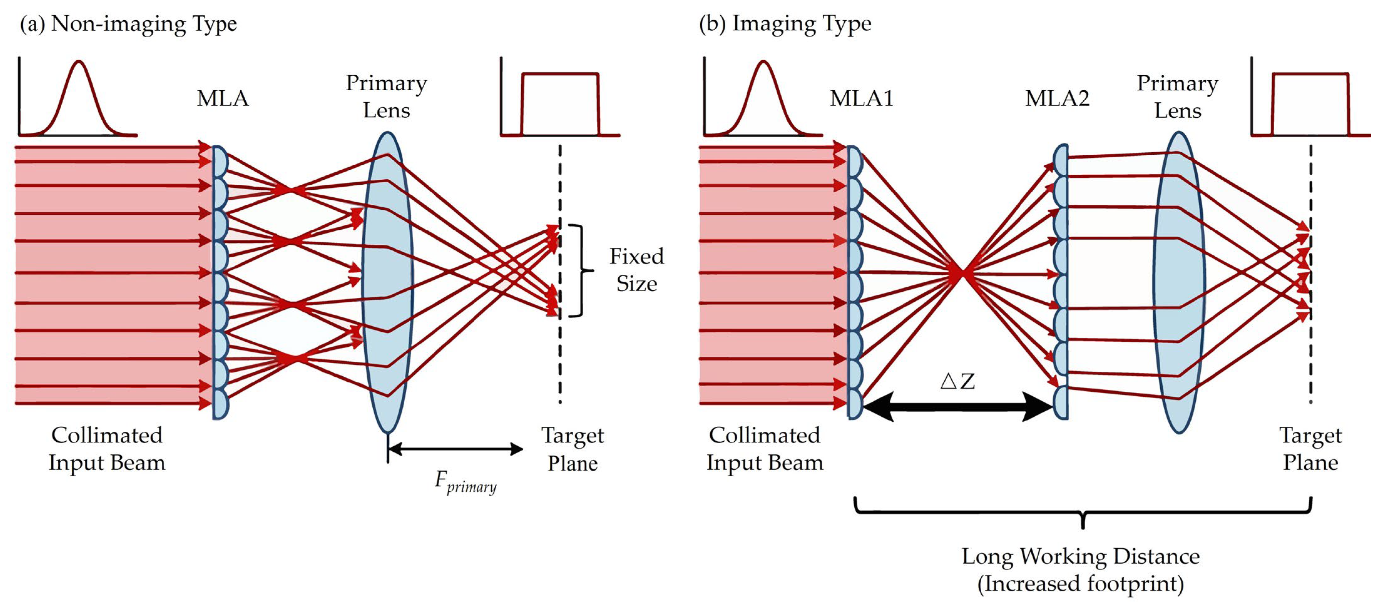 2.1. Limitations of Conventional Microlens Beam Homogenizers