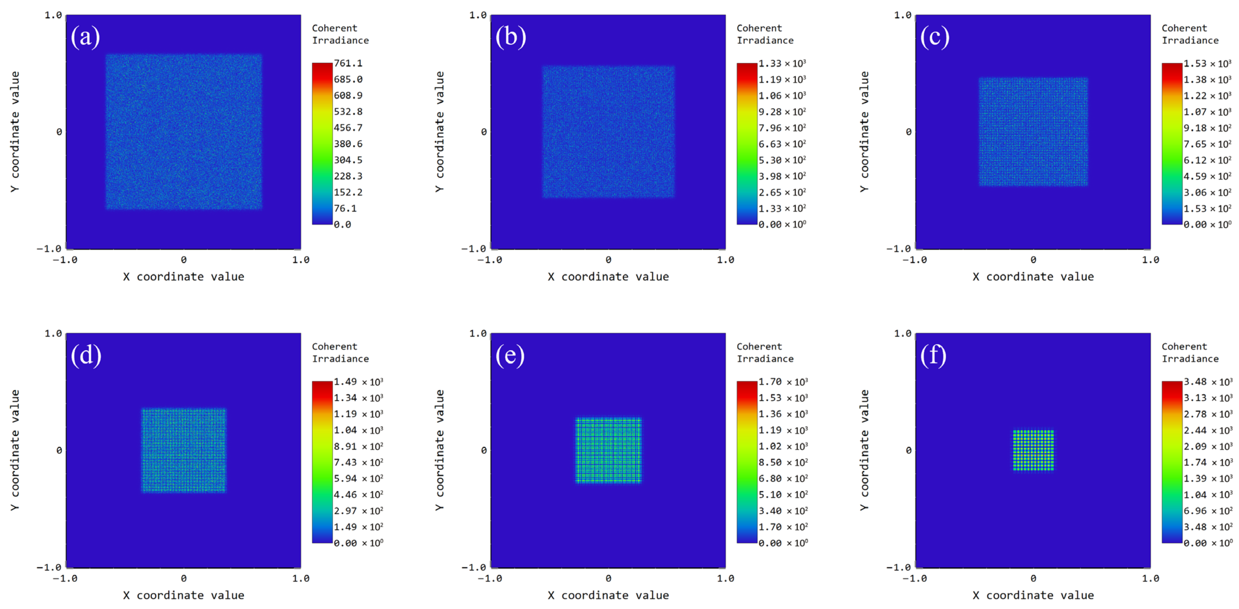 - Stefanidi, D.; Wilhelm, L.M.; Schreiber, P.; Brüning, R.; Tünnermann, A. Design of highly efficient far-field beam shapers with irregular maskless microlens arrays. Appl. Opt. 2024, 63, 3046–3057. [Google Scholar] [CrossRef]