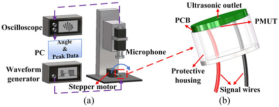 (a) Schematic diagram of the acoustic test platform. (b) Package of the PMUT.