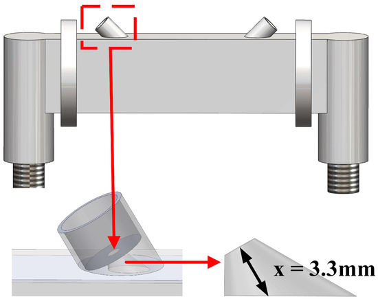 Figure 10 shows that tilting the transducer reduces the center-to-wall distance from 5.1 mm to 3.3 mm. This inclined configuration departs from the standard conical horn, and its acoustic field behavior within the pipe system requires further experimental verification. In particular, although the inclination of the transducer cavity essentially breaks the symmetry of the structure, the terminology system of “axisymmetric” and “non-axisymmetric” is retained in the subsequent discussion to distinguish the features for the sake of convenience of description. The acoustic module designed in this study was mounted on the acoustic test platform shown in Figure 4a to analyze the acoustic directivity in the plane of the flow direction in the pipe.