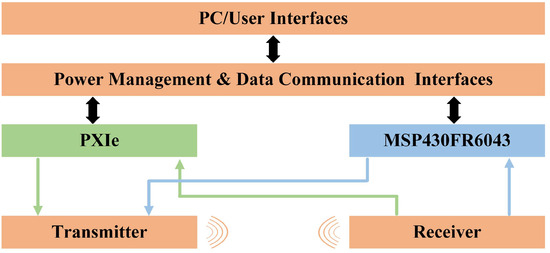 The experimental setup and system are built as shown in Figure 12. The experimental system consists of three parts: the pneumatic module, the flowmeter module, and the data acquisition system. The pneumatic module employs an air pump as the driving source. A commercial mass flow controller (MC Series, Alicat Scientific, Tucson, AZ, USA), factory-calibrated and traceable to the National Institute of Standards and Technology (NIST), was used as the reference instrument for flow calibration. The device was operated within its valid calibration period throughout all experiments. In the flowmeter module, which has a cross-section of 10.2 mm in width and 21.8 mm in height, the sensors adopt a V-shaped configuration to enhance detection sensitivity by extending the effective acoustic path length in a compact geometry [9]. In our setup, they were tilt-mounted on one side of the pipe, with their center axis forming a 60° angle with the axial direction of the pipe. To ensure a stable flow field, we integrated a rectifier plate into the measurement pipe [46]. The data acquisition system utilizes a modular instrumentation platform (National Instruments, Austin, TX, USA) working with the ultrasonic sensing microcontroller (MSP430FR6043, Texas Instruments, Dallas, TX, USA). As shown in Figure 13, the experimental procedure comprises two phases: acoustic beam drift verification and flow measurement performance validation. The system utilizes the PXIe module’s high-precision signal acquisition, real-time processing capabilities, and multistage anti-aliasing filtering technology to continuously monitor amplitude variations in raw received signals, thereby validating the beam stability of the PMUT integrated with the non-axisymmetric cavity. Subsequently, flow measurement performance is evaluated using the MSP430FR6043 microcontroller, which enables acquisition of ToF and DToF data. In our setup, the PMUT is connected to the MSP430FR6043, and bidirectional signal transmission is achieved using a 3.3 Vpp excitation voltage and time-division multiplexing (TDM). Data acquisition was performed with a graphical user interface (GUI); the recorded measurements were converted to flow rates using Equation (4).