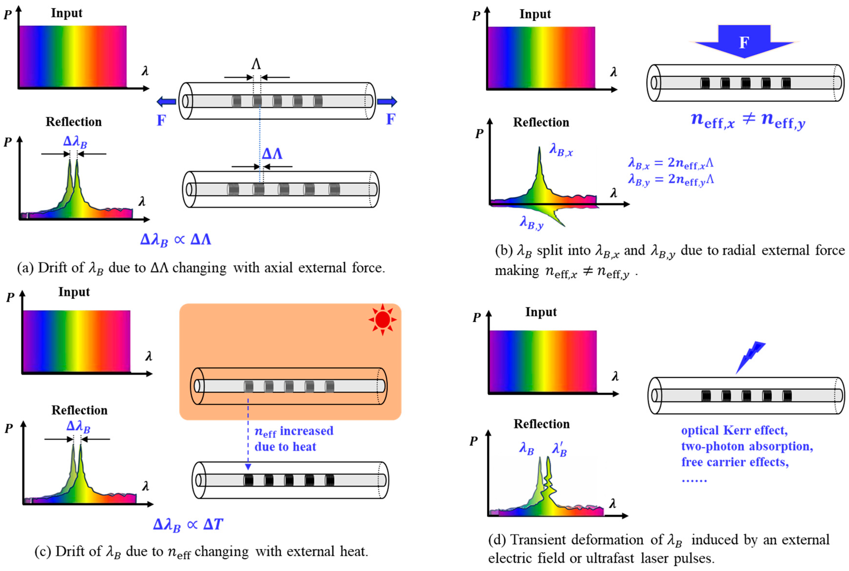 | Transverse Load | (Birefringence) | Small (<1 nm) | Moderate (ms) | Low/ Poor | Vector sensing capability | Spectral splitting, not pure tuning |