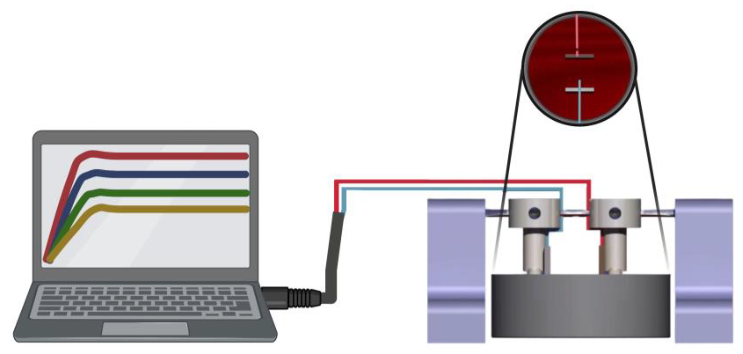Figure 2, during galvanostatic charge-injection experiments, the fixture securely holds the plated electrodes in a fixed geometry. It maintains a well-defined electrode spacing while electrically mimicking the charge-transfer conditions within the sealed sensor cavity. The structure minimizes ambient-light interference and controls the optical path for image acquisition by providing a stable, enclosed, and reproducible measurement environment.