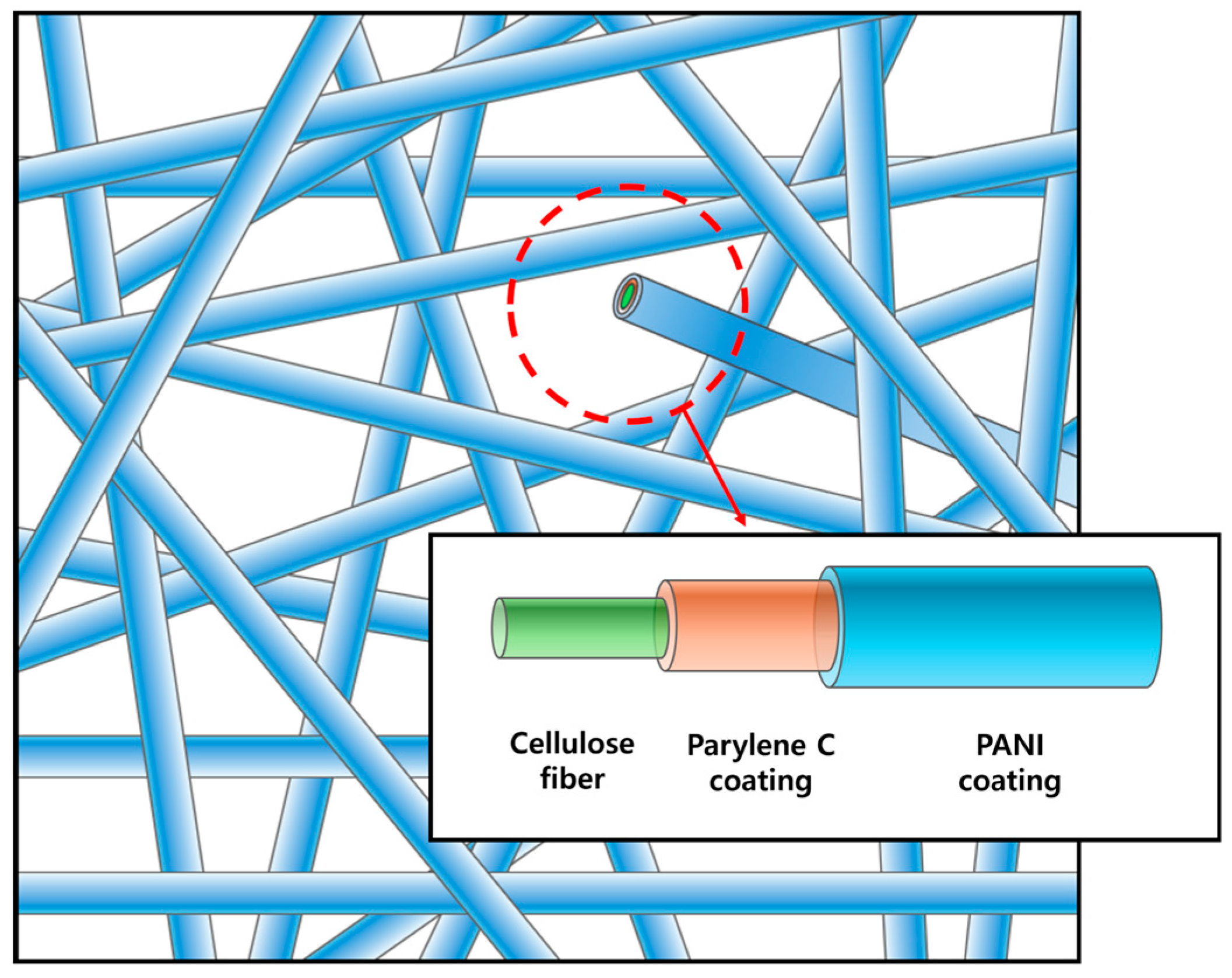 18]. The conformal coating effectively reinforced the fibrous network and increased surface hydrophobicity, demonstrating that polymeric surface modification is a viable route to enhance the durability and safety of cellulose-based separators. Parylene C, in particular, is a polymer with excellent physicochemical properties and microfabrication capabilities that can be deposited as a conformal coating onto a wide range of substrates, and has been widely employed in electronics, semiconductor devices, and biomedical systems [