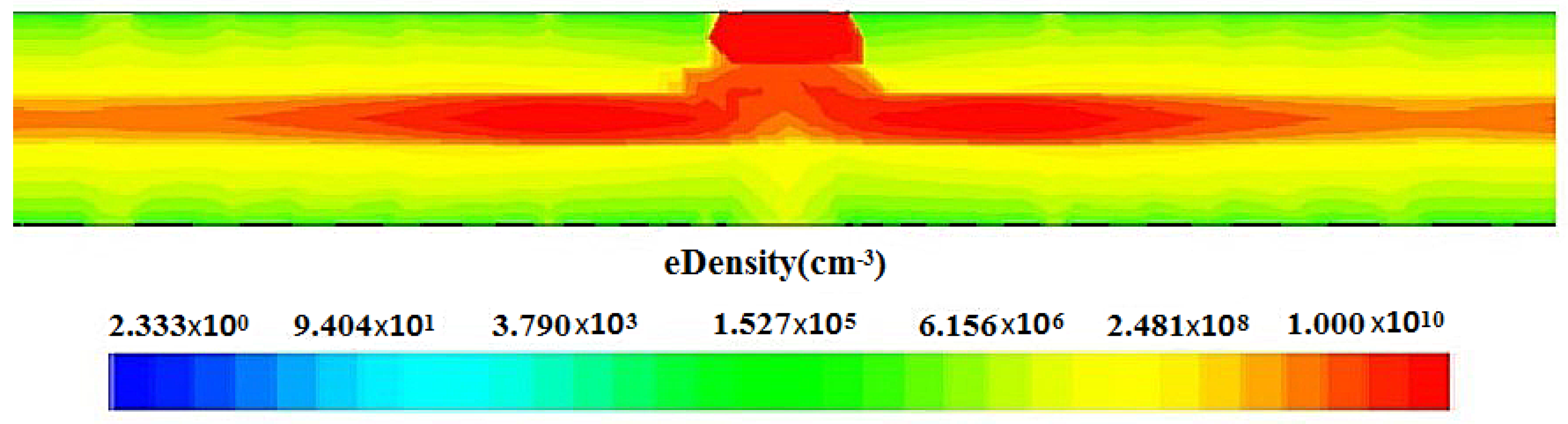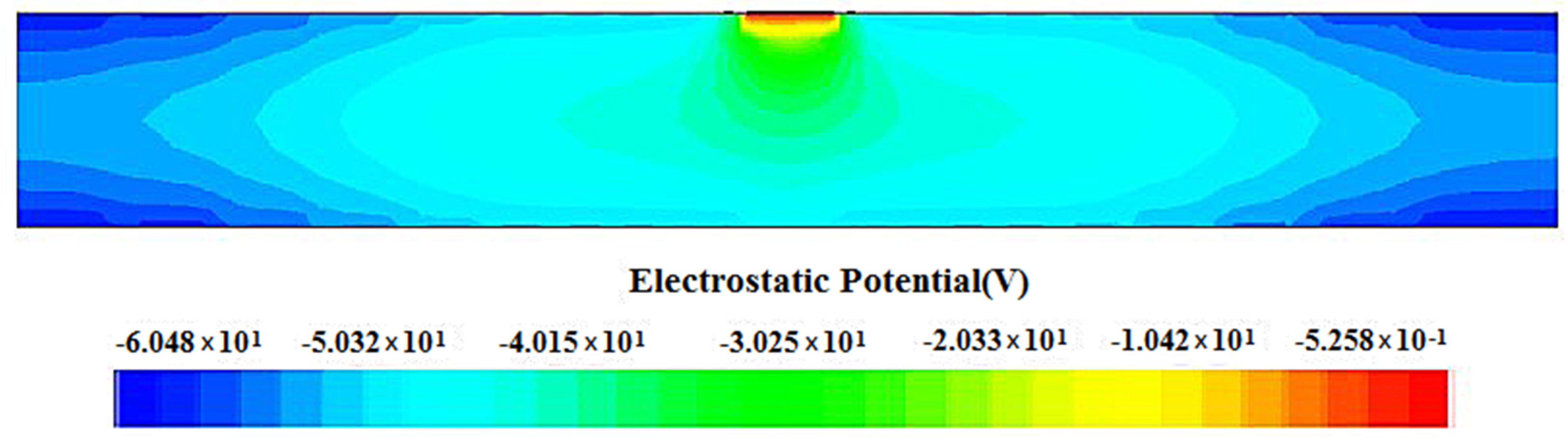 In our work, we chose the constant and minimum gap values for both surfaces to reduce surface leakage current. On the top surface, let E r as the electric field profile on the surface; then, the voltage drop between r and r + r is Δ V r :