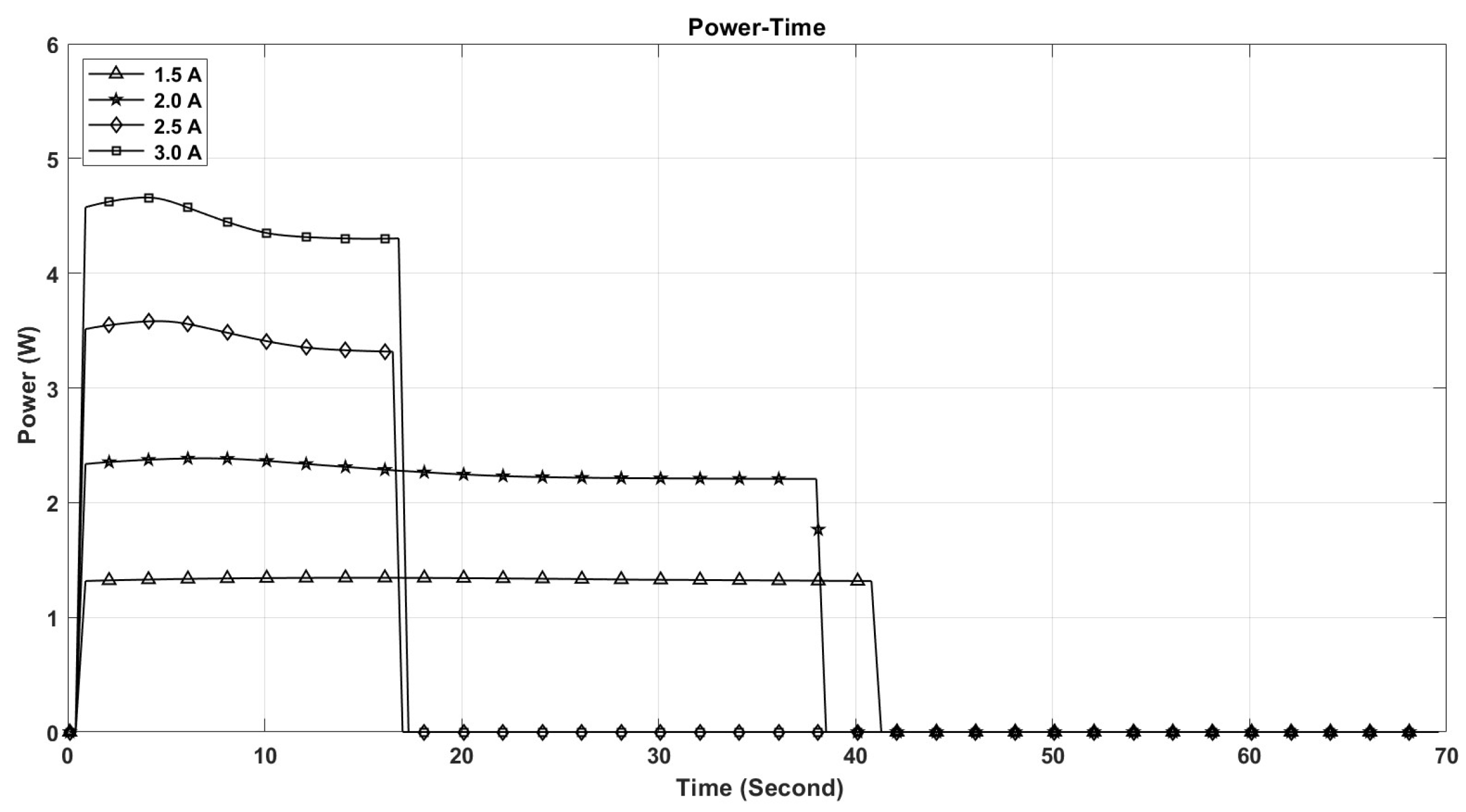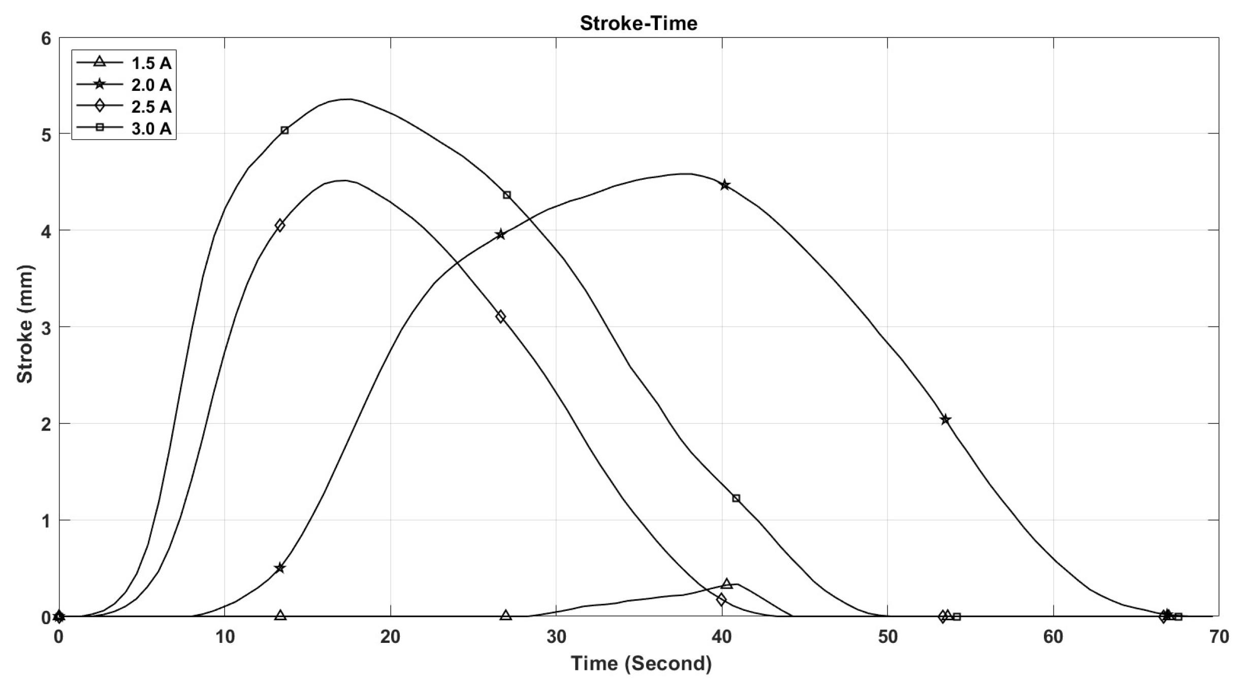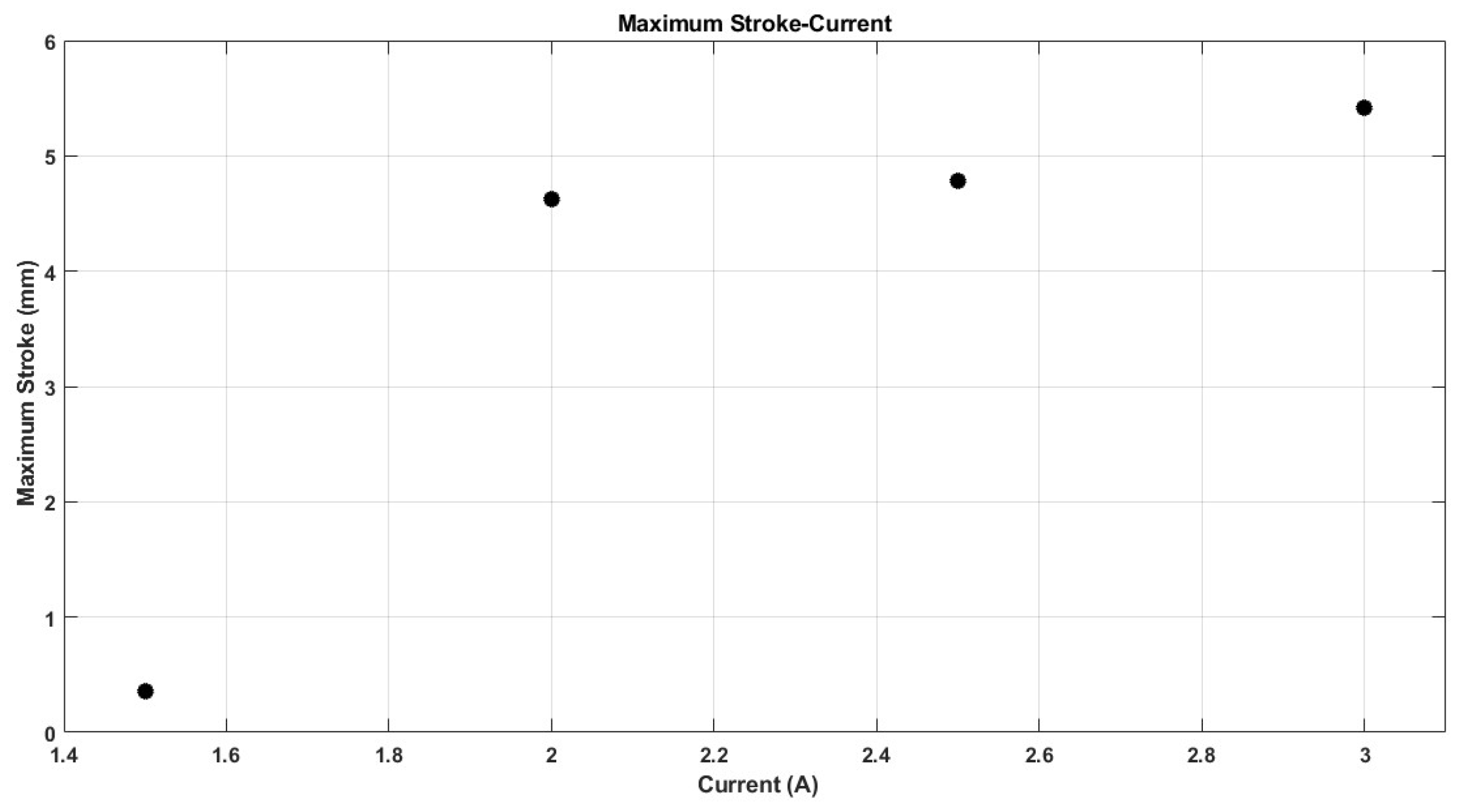 Figure 26. While it is evident that the capsule’s response time enhances with an increase in current, it is important to note that the power consumption of the springs also escalates, as demonstrated in
