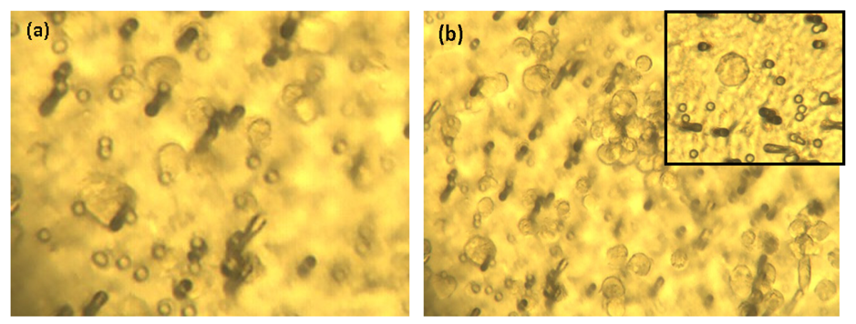 Figure 4(a) shows the seeded lymphocytes on top of the membrane in the culture chamber. The pores in the PC membrane can be seen in the background. After 72 h of mitogenic stimulation with PHA, we could see a significant increase in the size of the cell cytoplasm (Figure 4(b)).