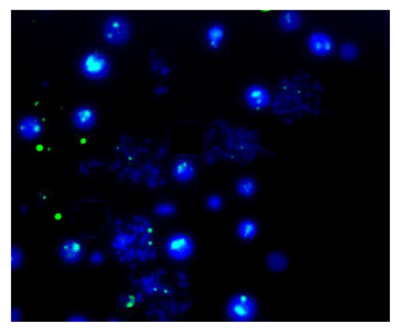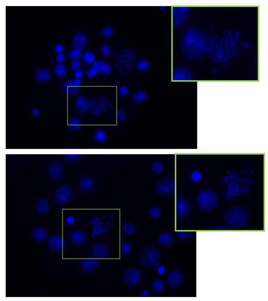 The spreads obtained from the integrated device and the control flask cultures were stained with DAPI and analyzed using an Axio Observer Z1 microscope. Figure 6(a,b) presents the spreads achieved from the FISHprep device and control flask samples respectively. The mitotic index in both the slides was found to be above 75%. The spreads on the FISHprep device were comparable to the spreads received with control samples.