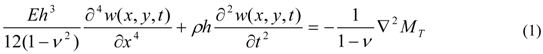 where E is the Young’s modulus, ν the Poisson’s ration, ρ the density and h the thickness of the plate. MT is the thermal moment generated by the applied heat.