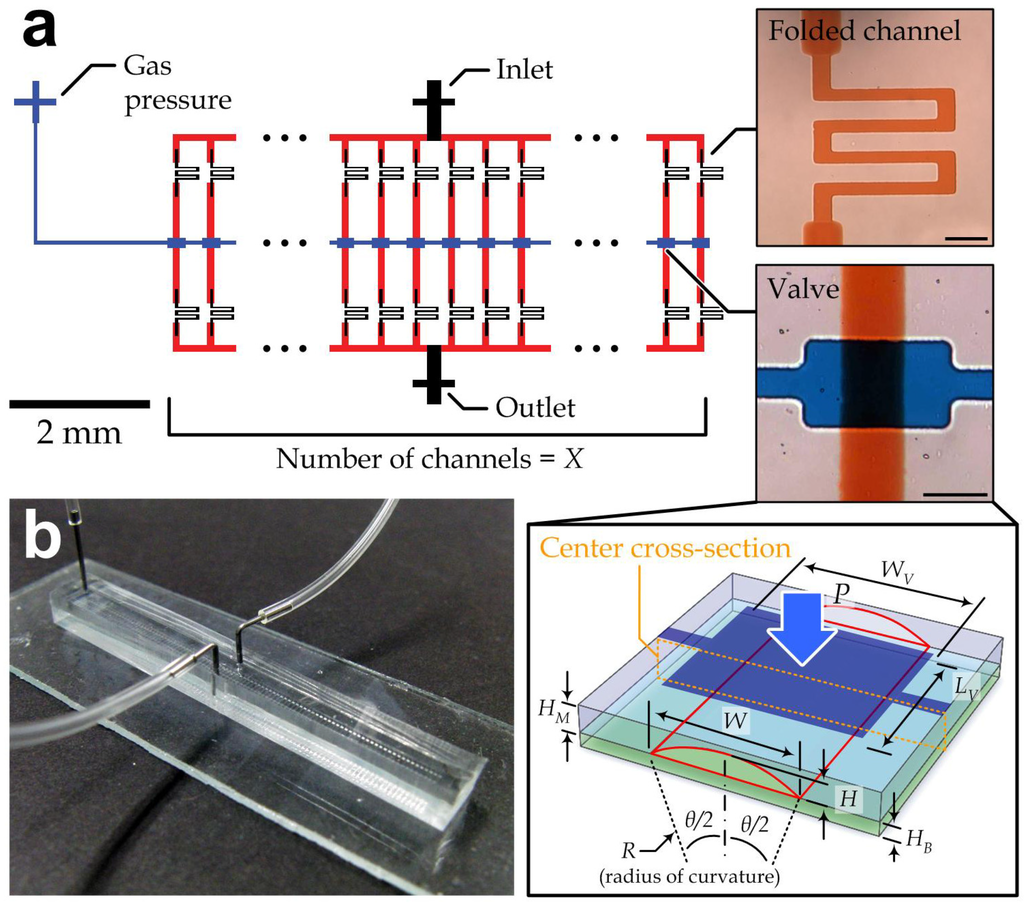 - Thorsen, T.; Maerkl, S.J.; Quake, S.R. Microfluidic large-scale integration. Science 2002, 298, 580–584. [Google Scholar] [CrossRef]