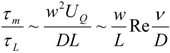 If the flow rate is the same in both inlet channels, then the flow Reynolds numbers in Channels A and B are identical: Re = ρUQw/μ. The mixing time is determined only by the diffusion coefficient of the liquid D: τm ~ w2/D. If the mixer channel has length L, the time required for a liquid particle to pass through the channel is τL ~ L/UQ ~ (ρLwh)/Q. In this case, the mixing efficiency in the channel is determined by the ratio of these two times: