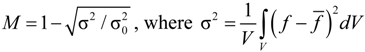 These qualitative considerations are confirmed by direct calculations. As an example, we consider mixing of two fluids in a T-type micromixer. The mixer is 200 μm wide, 120 μm high and 2000 μm long; U0 = 10−3 m/s. The fluid has a viscosity coefficient μ = 6.67 × 10−4 Pa·s and a diffusion coefficient D = 7 × 10−11 m2/s, which corresponds to numbers Re = 0.3 and Pe = 3000. For these parameters, τm ~ 560 s and τL ~ 2 s. Therefore, the optimal frequency should satisfy the conditions Tf < 2 s and τm ≥ Tf. The corresponding frequency is determined by the following condition: fop > 0.08 Hz. This estimate gives the following frequency: fop ~ 1 Hz. Curves of the mixing efficiency in this mixer versus frequency f and amplitude V are presented in Figure 30. Indeed, optimal mixing is obtained at a frequency of about 1 Hz.