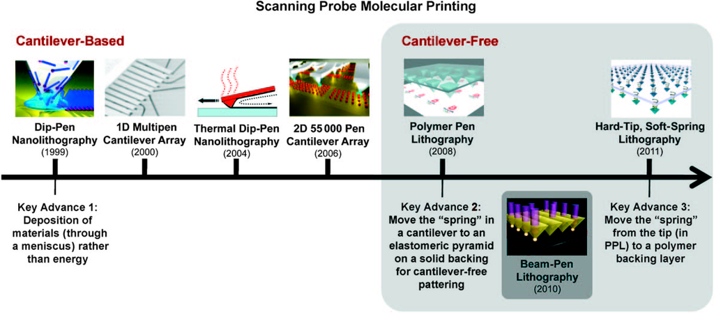 The evolution of Dip Pen Nanolithography (DPN). Reprinted with permission from [54].