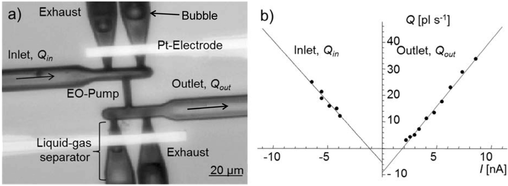 - Heuck, F.C.A.; Staufer, U. Low voltage electroosmotic pump for high density integration into microfabricated fluidic systems. Microfluid. Nanofluid. 2011, 10, 1317–1332. [Google Scholar] [CrossRef]